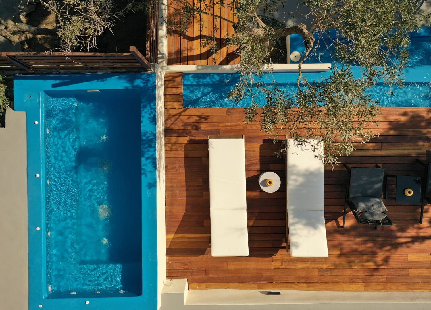 Imagine yourself relaxing on a terrace hovering between the clear sky of Cyclades and the Aegean Sea, blissfully gazing at the mesmeric sunrise. One of the reasons why the suites are named Pafsilipon; meaning the end of sorrow. On the most prestigious district Vaporia in Hermoupolis, the capital town of Syros, Pafsilipon Suites welcome their guests in a world of exquisite charm and indulgence. Standing on the natural rim of an enchanting site, the Suites pay their respect to the minimalist style of Cyclades and promote comfort along with an inspiriting merge of heartwarming colors. The private patios with chairs for sunbathing and dinner table do not compromise on style and lead down to your own private sea access.