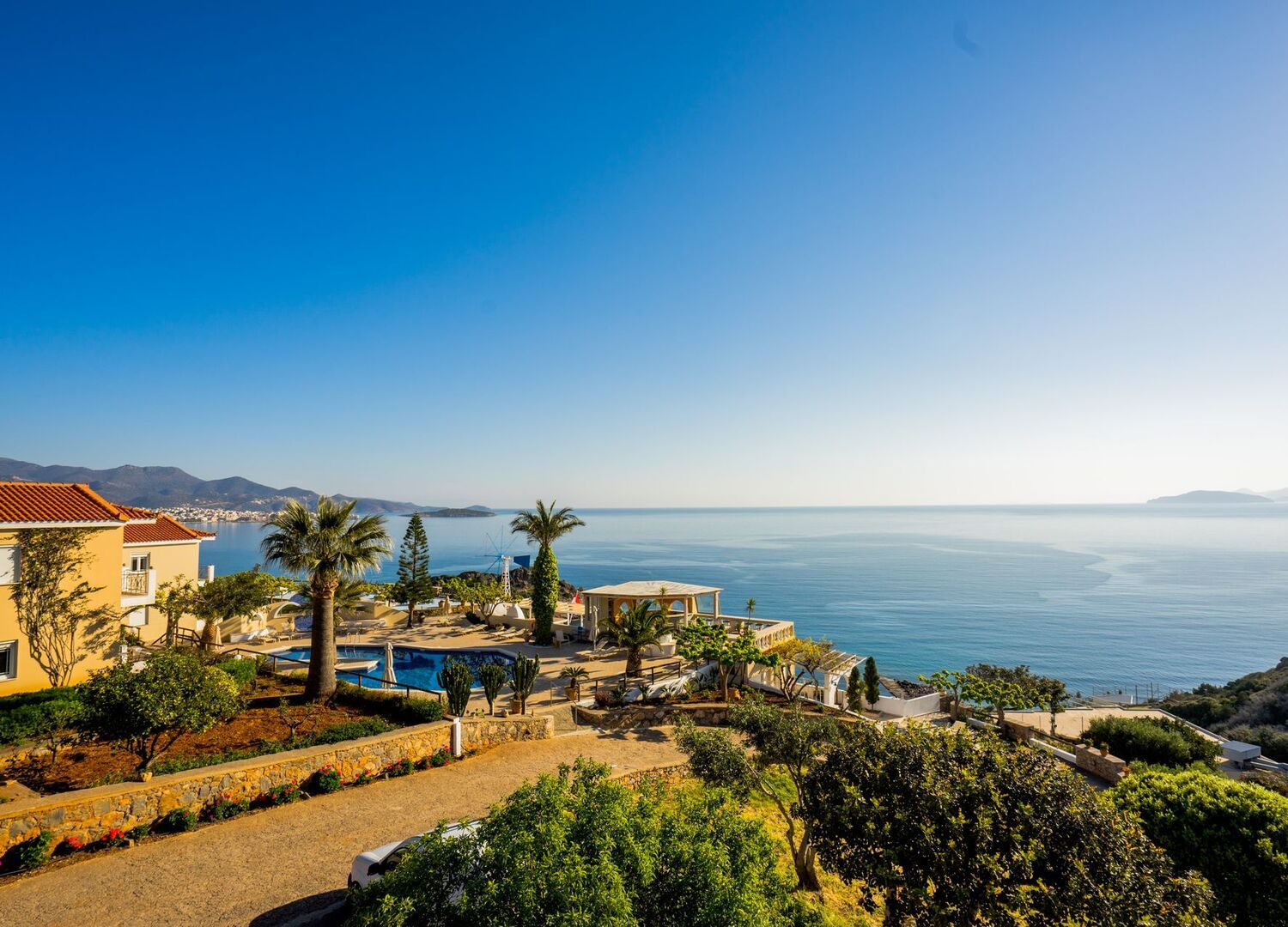 Panorama Villas is a small 4 star self catering resort which is designed with style, built with passion and offers comfort in a unique atmosphere. The splendid accommodation is in eleven villa apartments which are fully decorated and surrounded by beautifully landscaped gardens. Set on a steep hillside only 3 km from Agios Nikolaos, Panorama Villas has breathtaking sea views.