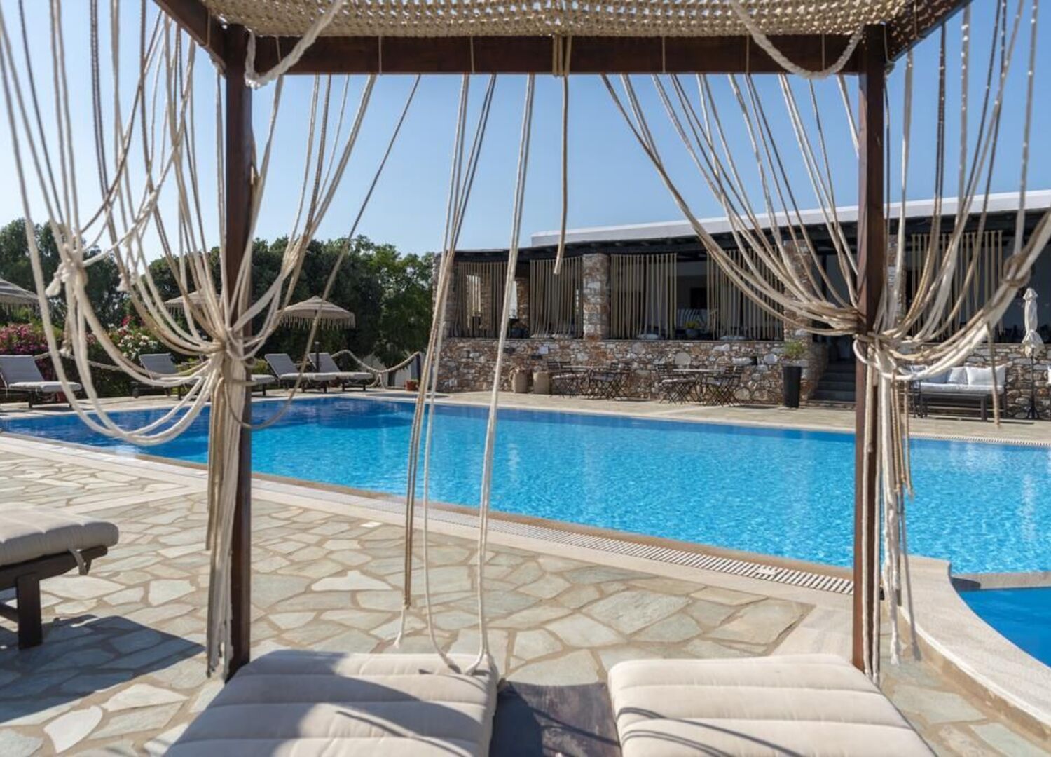 Parosland 4* Hotel is located at the south part of Paros in an area of 10 acres surrounded with