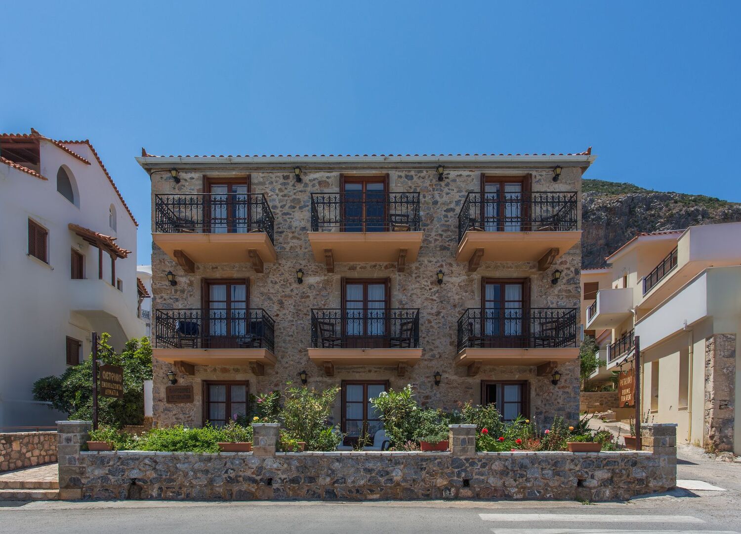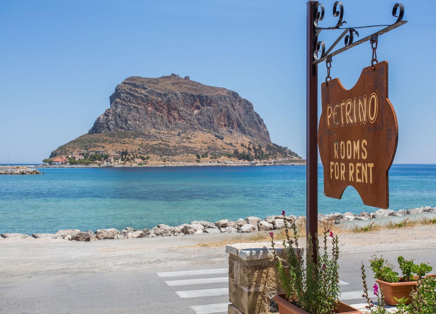 Petrino Guesthouse is a traditional stone building, 10m from the sea and 100m from the Castle's Bridge. It has verandas and balconies with black metal railing and wooden ceilings. There are big, comfortable, and modern rooms with wooden furniture. They offer  hot water, heating, air-conditioning, television and refrigerator. All rooms have verandas with a view of the sea. Monemvasia is located on the SE part of Lakonia, Peloponnisos.