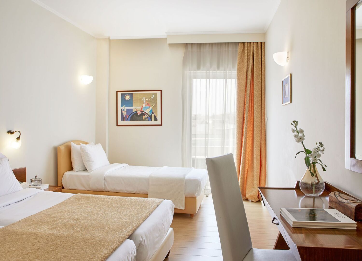 The hotel is located in the centre of Preveza, in the historical centre and shopping district. Preveza, situated just 3km from Aktion Airport, is a lovely town with distinct neoclassical architecture, an enchanting coastline, picturesque fish tavernas and imposing fortifications. The surrounding area is of particular historical, cultural and natural interest, as it boasts numerous monuments, archaeological sites, amazing beaches and unique ecological destinations, providing the ideal conditions for an unforgettable stay.