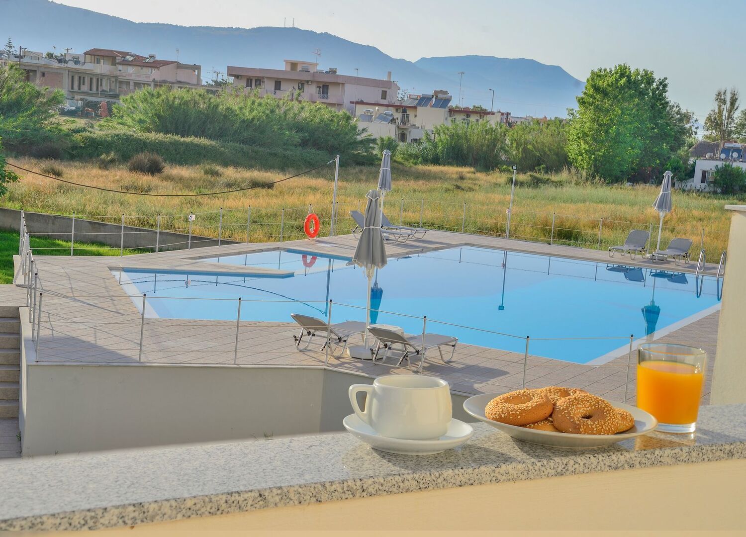 Reina Apartments is a centrally located hotel in Kavros, just a short walk from the beautiful coastline. The hotel is also conveniently close to Kournas Lake and Georgioupolis. Guests can enjoy modern facilities, free WiFi, and a kitchenette in each room, as well as access to the outdoor swimming pool. The elegantly decorated rooms offer mountain and pool views, making it a peaceful and comfortable stay for guests.