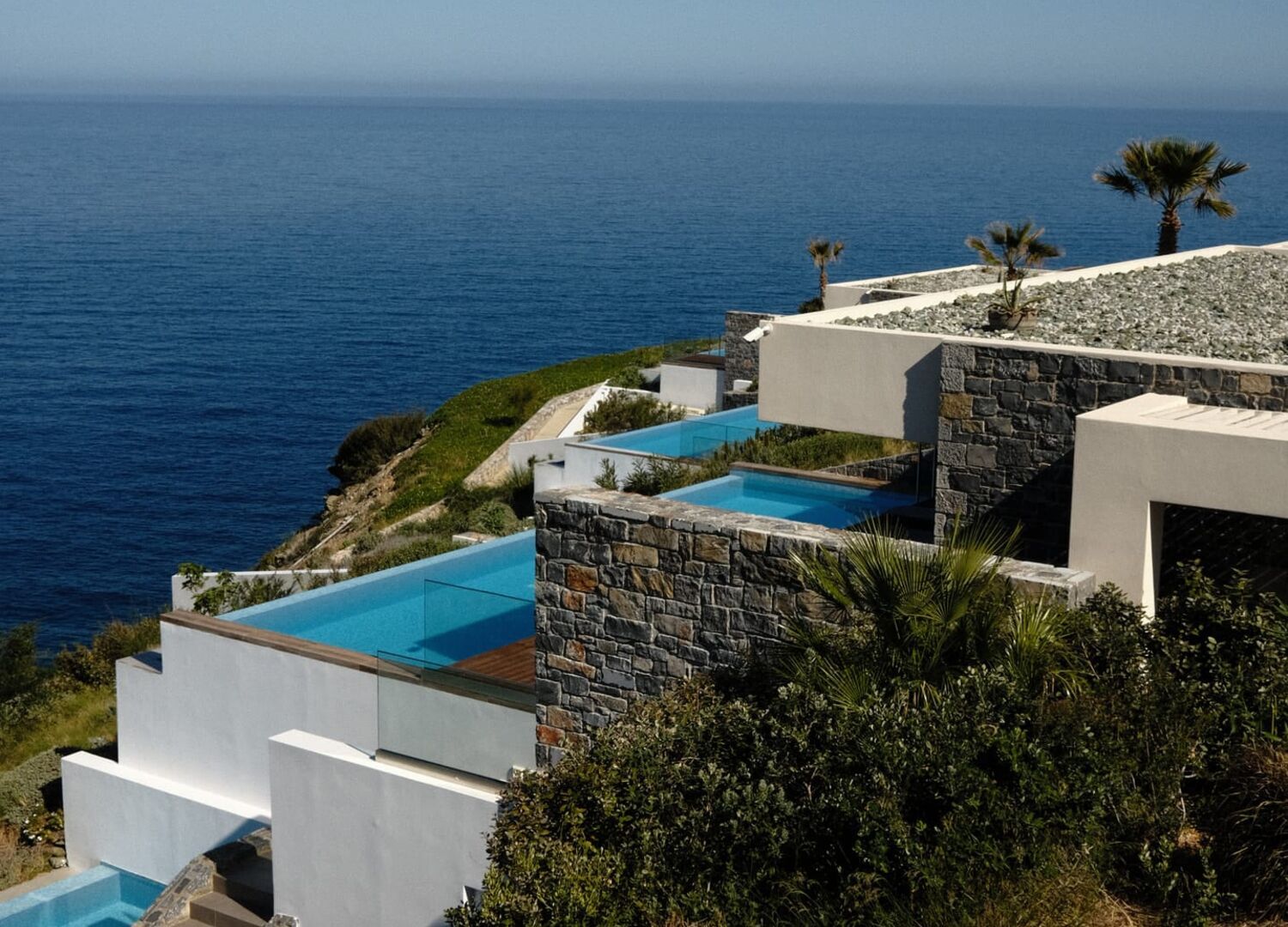 Rock Bay Villas are a private guarded complex of 4 villas with panoramic views of the Mediterranean Sea. Located on a picturesque slope of the Crete Island, the elegant and contemporary villas will will offer you privacy and a comfortable stay in a cozy bay with a private beach. Each villa has a terrace with panoramic views, a pergola with kitchen and grill, a dining area. Private swimming pools with fresh water are available.