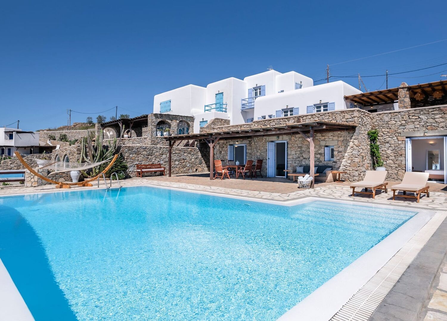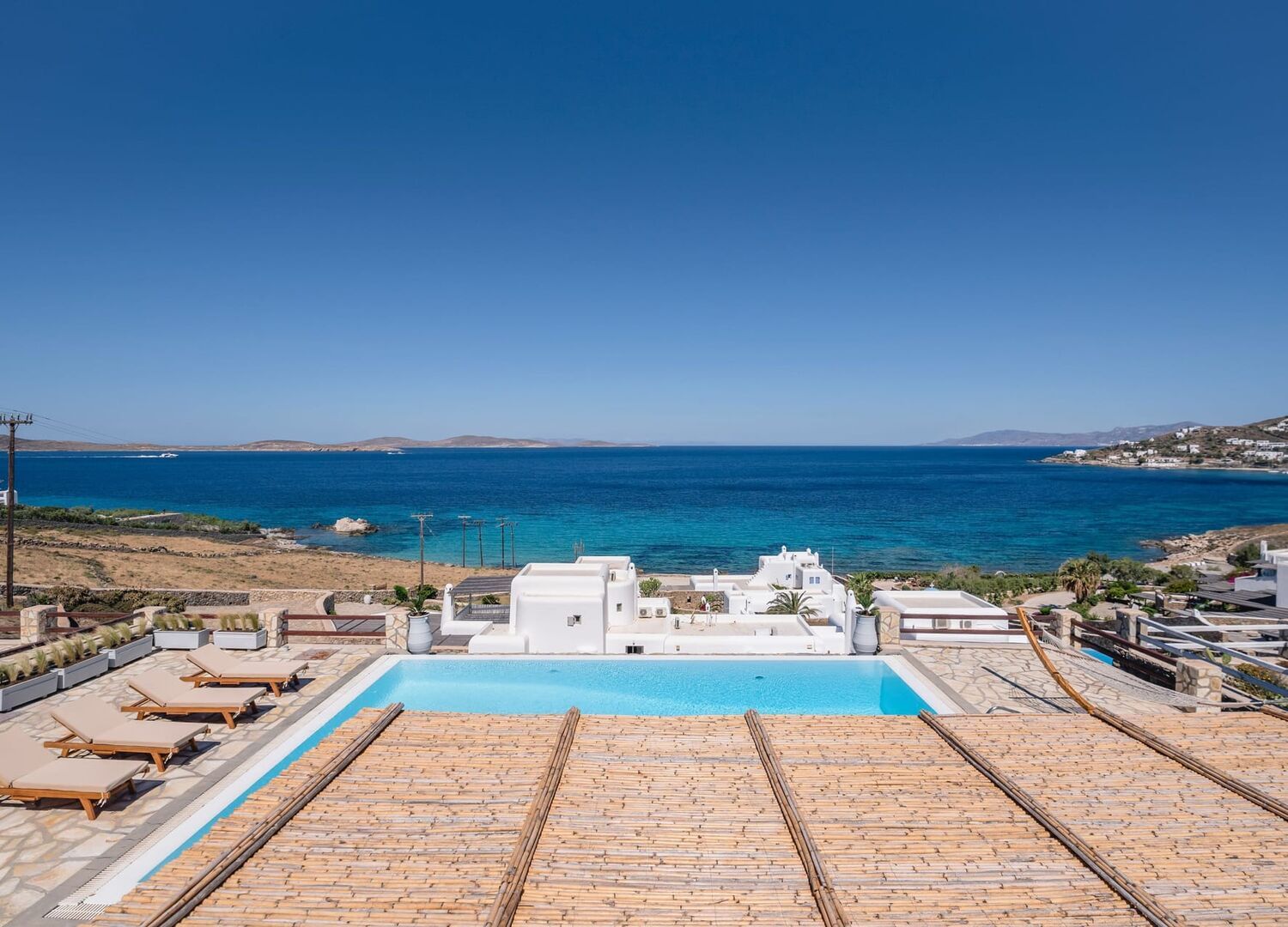 Salty View Mykonos is a luxurious villa located in the exclusive area of Aleomandra on the island of Mykonos. Situated in a gated complex with access to a semi-private beach, the villa offers stunning views of the Aegean Sea and the island of Delos. With Ornos and Agios Ioannis beaches nearby, guests can enjoy the best of Mykonos while taking in the colorful sunset.