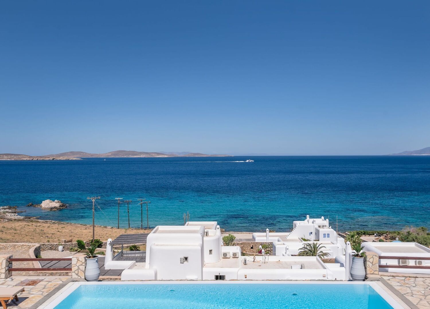 Salty view is located in an high-end area of Mykonos island, Aleomandra. The Villa is part of a gated complex with independent villas, having access to a semi-private beach. Ornos and Agios Ioannis beaches are only a short ride away. This beautiful villa offers magnificent views, overlooking the Aegean Sea while facing the island of Delos and its colorful Mykonos sunset.