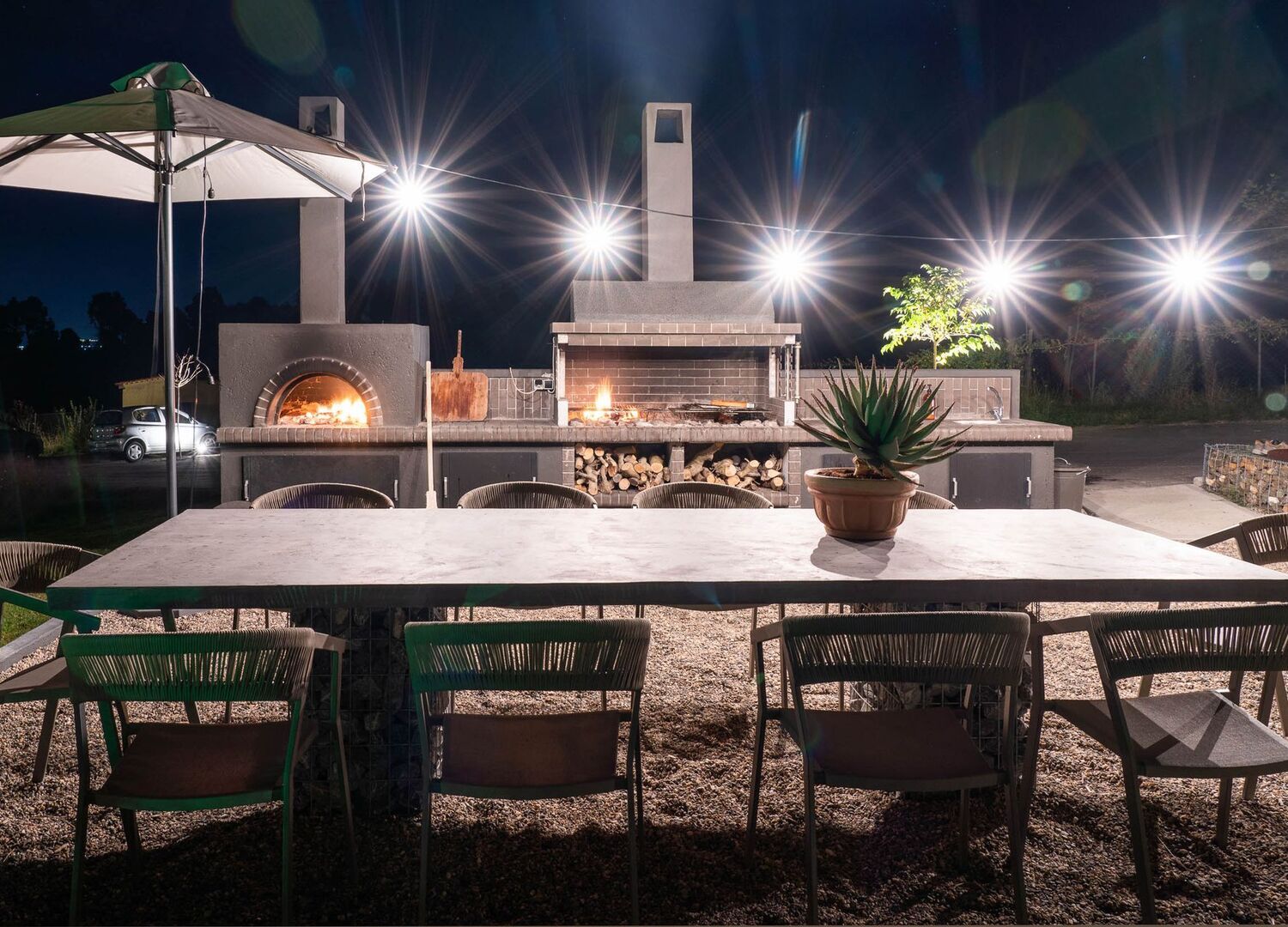 A large common-use pool with a view to the green surroundings is always inviting guests for a refreshing dive! Right next to the pool, lies our Pool Bar, ready to serve cold refreshments to enjoy by the sun loungers, while our barbeque spot is fully equipped and available, for you to enjoy your dinners along with your family or friends under the moon.