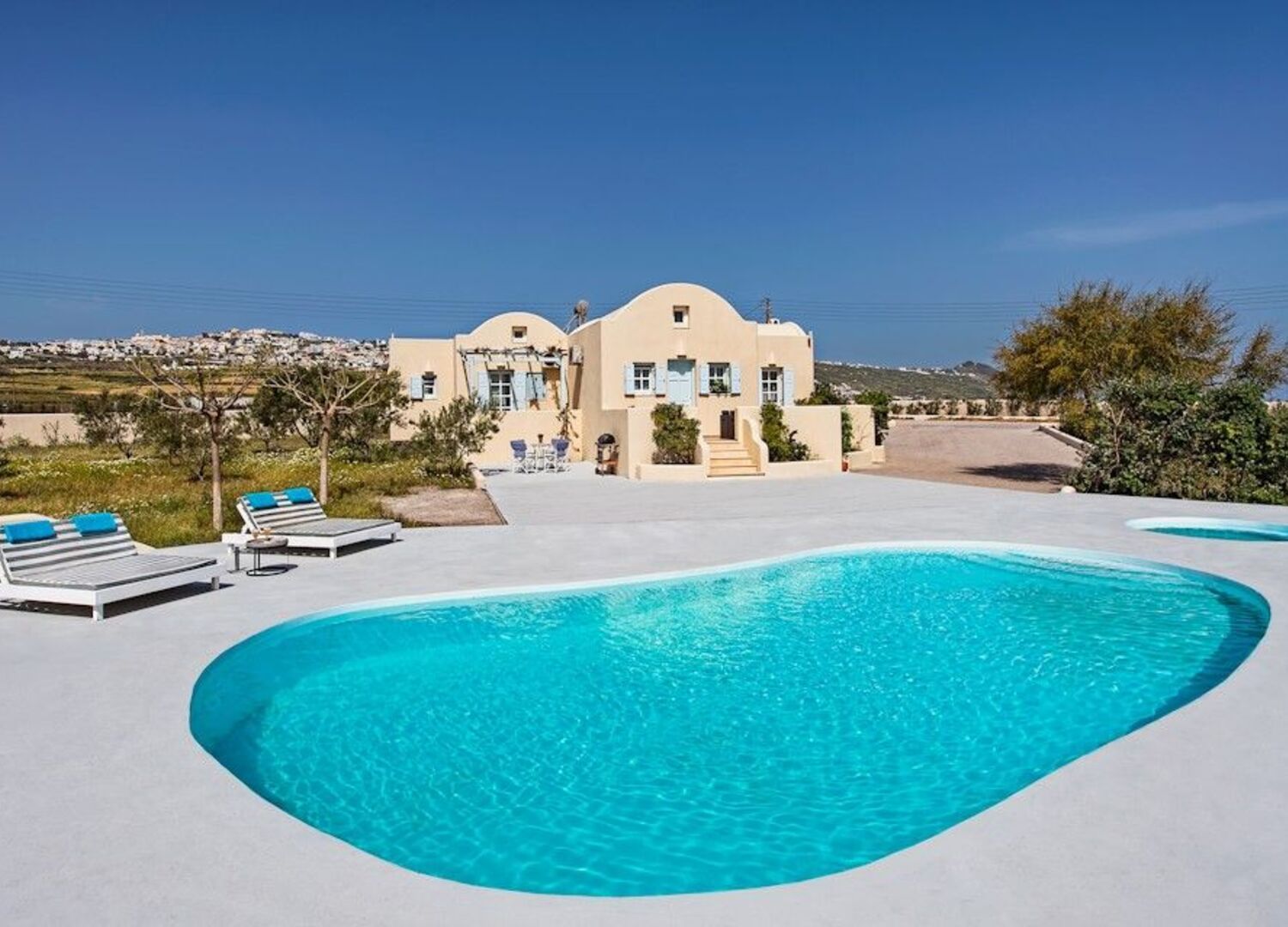 Awesome place for families located in Fira which makes commute to both North and South of the island easy. Well thought of villas with private swimming pool, fully equipped kitchen, sofa cum beds and air conditioning. The best part was the property manager, Stelios who was very cooperative and always available with a big smile on his face to help with all our requirements. Has a very friendly and professional approach which made the stay very comforting. In nutshell, we had a gala time staying at the property.