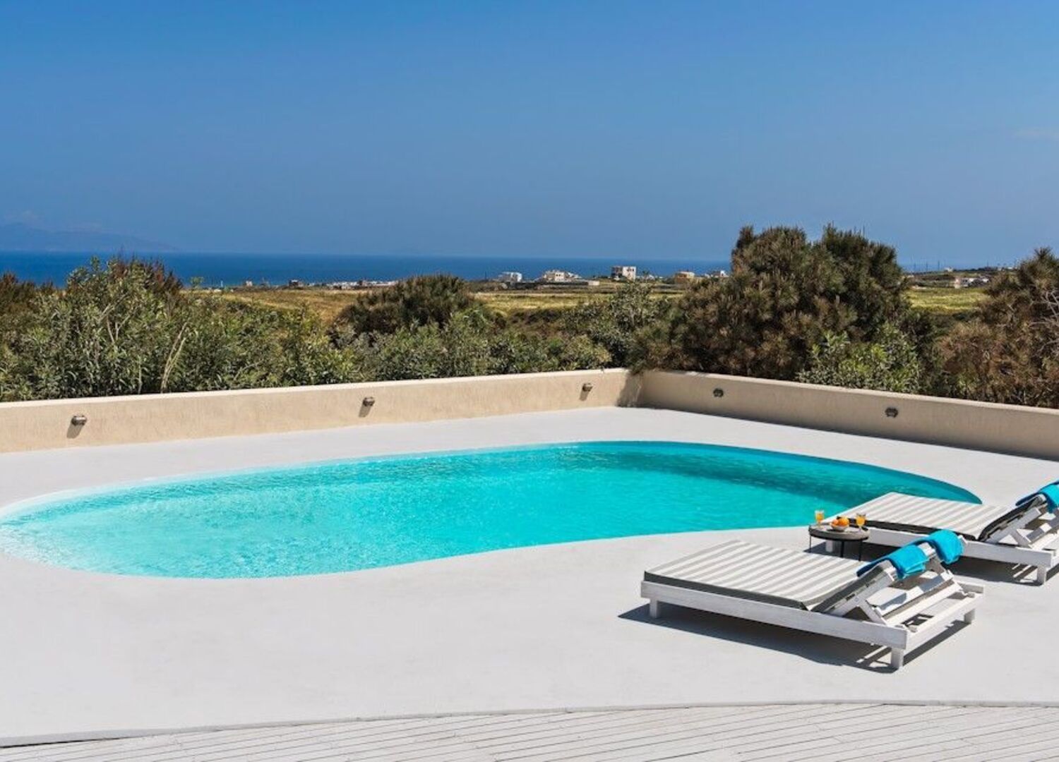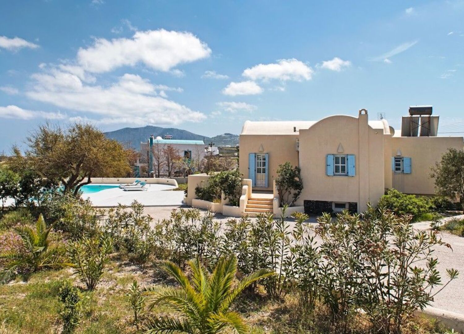 We arrived before check-in and we were allowed to have access to the room upon arrival. When we arrived it looked like the room was still being cleaned even though we were told it was already clean. With that said, we found that there were some issues with the cleanliness of the room. I notified Stelios who's like the manager of the property and everything was taken care of the next day. Cons: Stains on the floor day 1, pots and pans not clean, fridge not clean, table dirty, flies everywhere, counters dirty, little tables in living room area dirty, and hairs on the floor and some found in the bed. Hairs on floors can be expected, but I hate seeing hairs in the bed. The outside lounge chairs were dirty with an underwear and beer can under the lounge. Pool was dirty with debris but someone came to clean it later in the day. The landscaping, which is beautiful, makes it impossible for the pool to remain clean from day to day. Pros: It is a really nice villa. The place is in a great location about five minutes from the airport. Not far away from Fira city center. I listed the cons because some were found on day one when I think the rooms were not fully cleaned because we arrived early. We cleaned some of the areas that were dirty and got bug spray from Stelios to deal with the flies. As I mentioned, Stelios took care of the other issues the next day. He's very attentive and responsive to any issues we had. He helped us with giving details about what to do on the island and the places to see. Also gave info on places to eat. He's definitely an asset to the property and tenants. I'd stay again if we visited the island.
