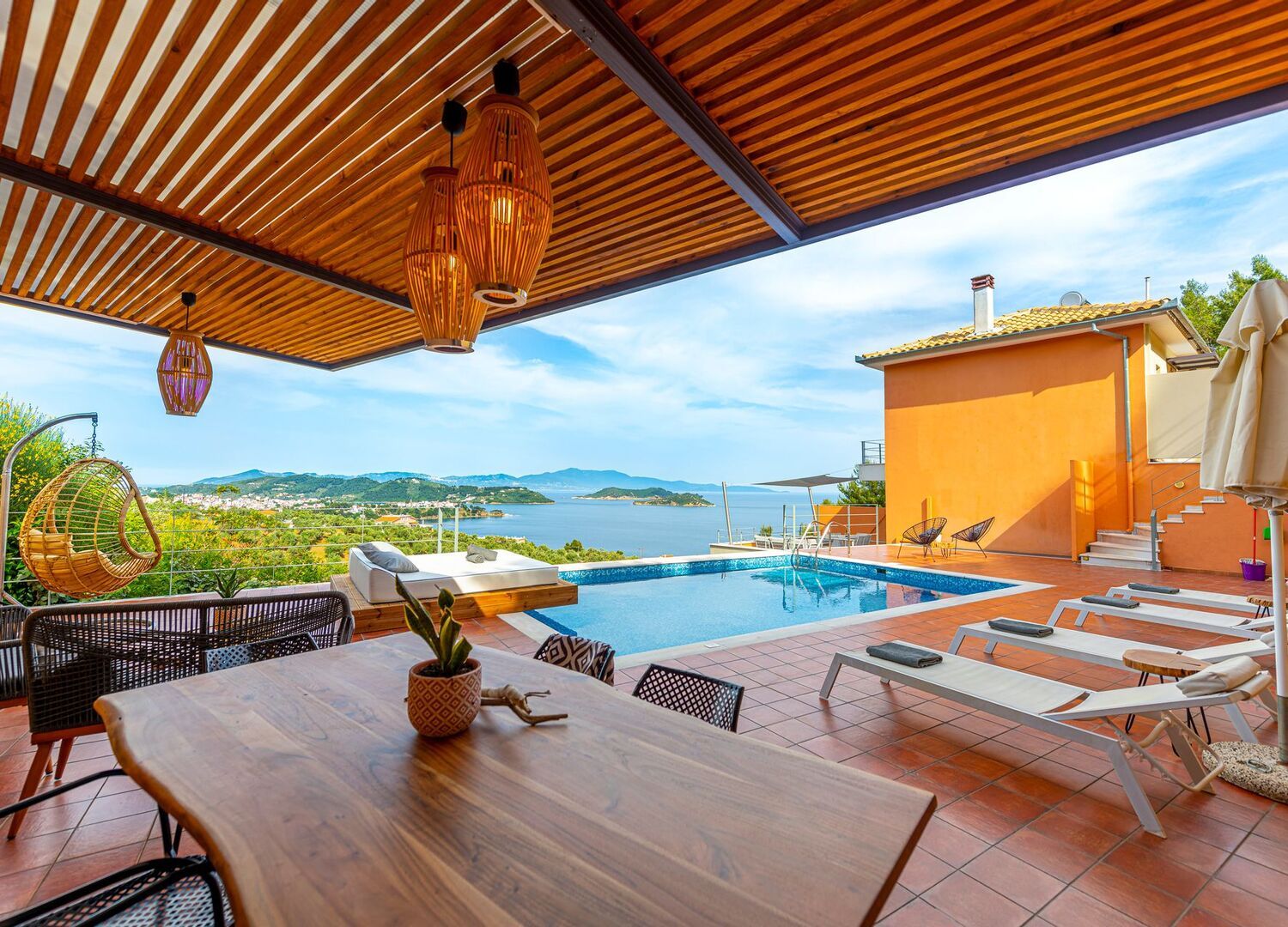 Simply amazing. The best villa I've ever stayed in. Stayed in the 2-bed villa with swimming pool which is beautifully furnished and cleaned to perfection. The pool is also kept exceptionally clean and is a great size, with the most incredible view overlooking the sea and skiathos, where you can get a great sunrise view. The owner of the villa is kind, friendly and very quick to respond/help when you need. To get to skiathos town you can either walk which takes about 35 minutes if you're in good shape via a shortcut path to the side of the villa. All down hill to get there so it's a nice walk into town. To walk back up it's extremely steep so you're better off getting a taxi, especially if it's dark as the roads don't have any lights. The villa is also super quiet so it's ideal if you're looking for a peaceful getaway. I look forward to booking another stay here next year! 😊