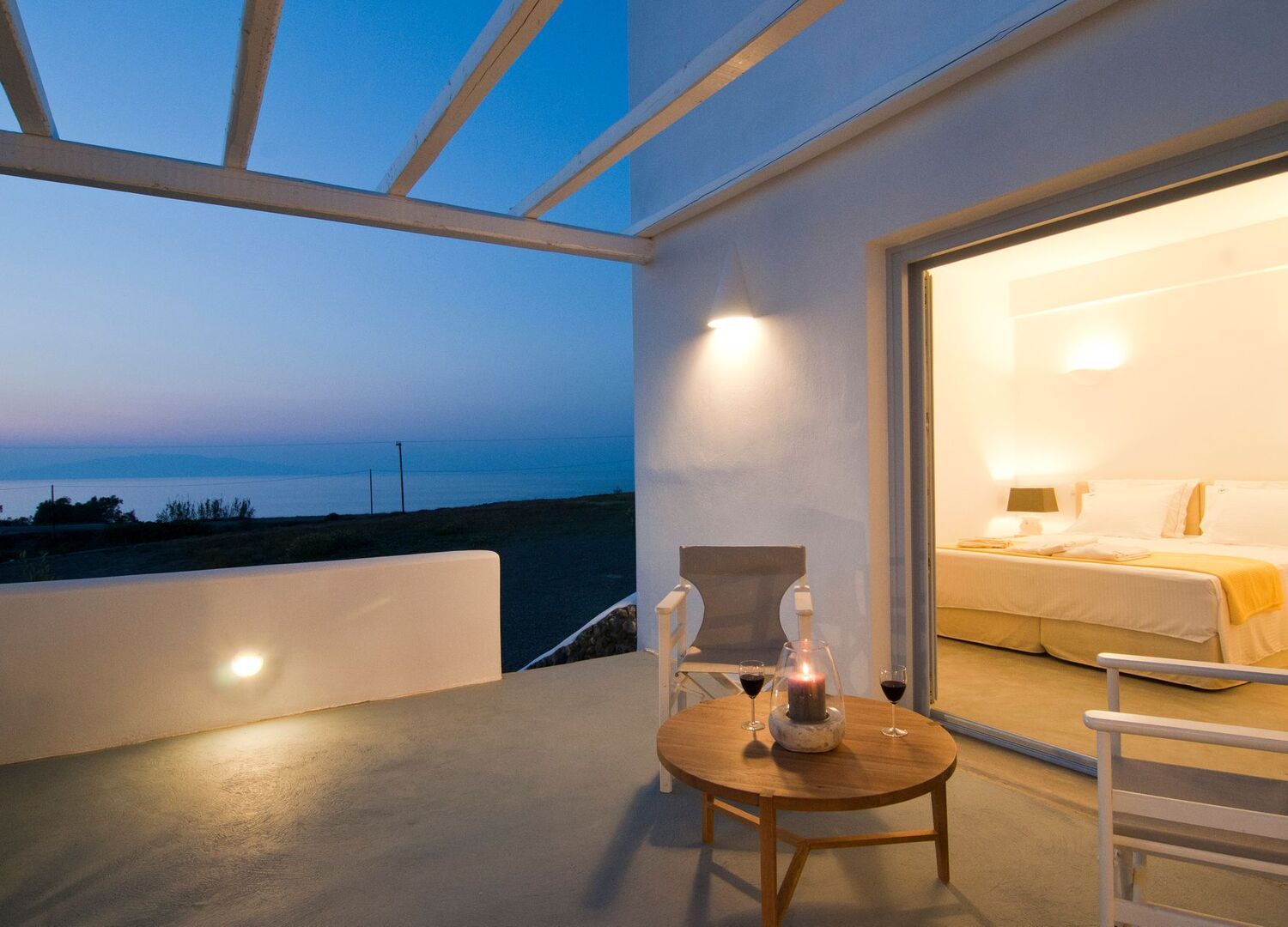 Our location is in close proximity to the main village, a mere 3.5 kilometers away, yet far enough from the hustle and bustle of the busy and crowded Oia. Here, you can surrender yourself to the enchanting embrace of nature. Immerse yourself in the endless vistas and unobstructed panoramas of the Aegean Sea and neighboring islands, allowing yourself to truly unwind, indulge in refreshing swims in the sea just steps away, and revel in a memorable vacation experience.