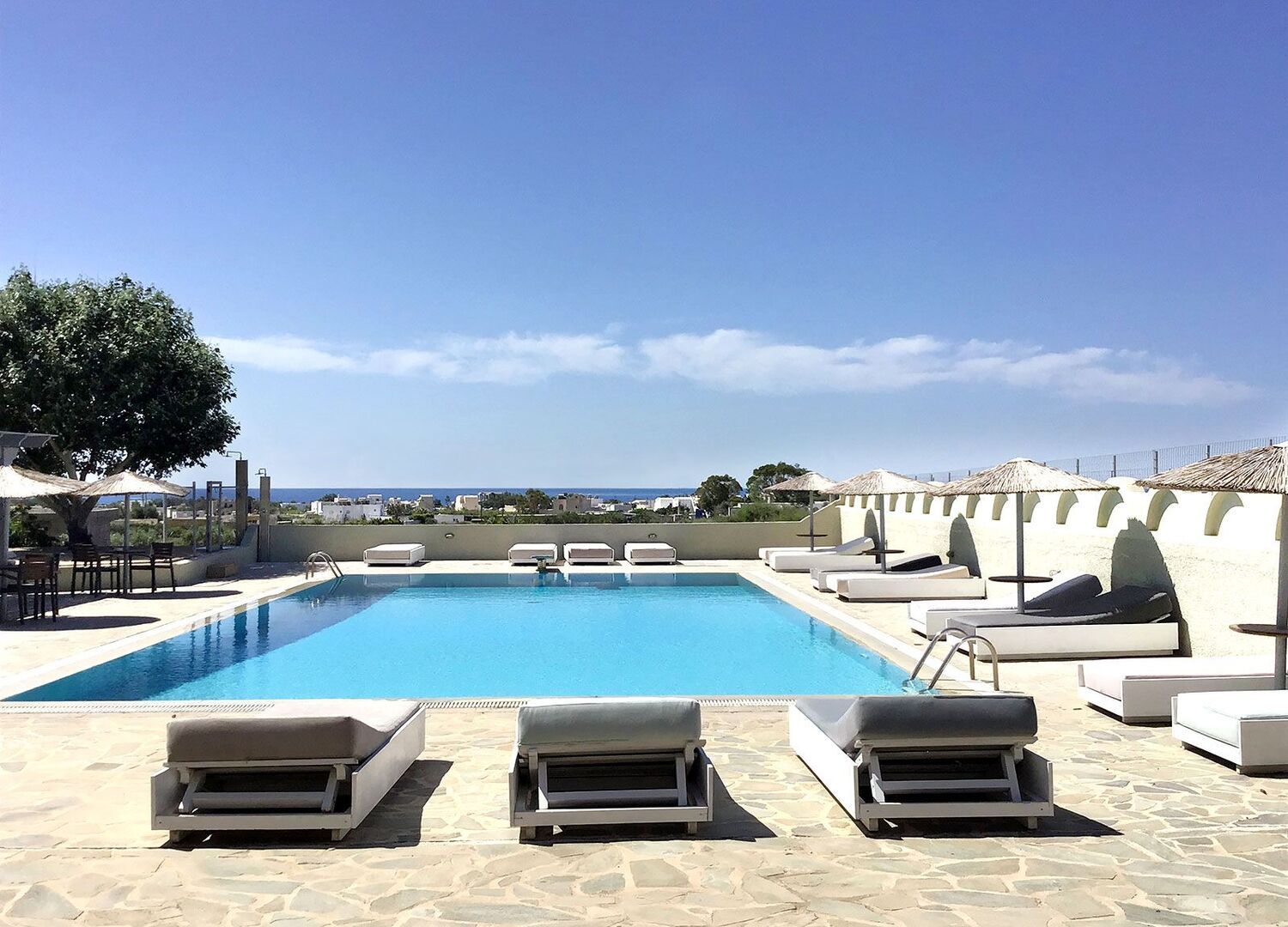 Ok Hotel with a really nice location, close to the beach and restaurants. Really easy to travel around to see the rest of Santorini. The rooms need some renovation, and was in worse condition than expected. We had reservations for "PREMIUM DOUBLE PARTIAL SEA VIEW ROOM", and expected a better standard than what we received (not even close to the nice pictures). Bed are not comfy, and the shower is a comedy on its own. For us, the breakfast was ok, but we can understand that people get disappointed. The pool area was really nice, and had a little poolbar. Everything was clean all the time. The staff was 10/10. Friendly, serviceminded and helpful. If we at a point will return to Santorini we would probably end up at this hotel again, because of its location and the staff ❤️