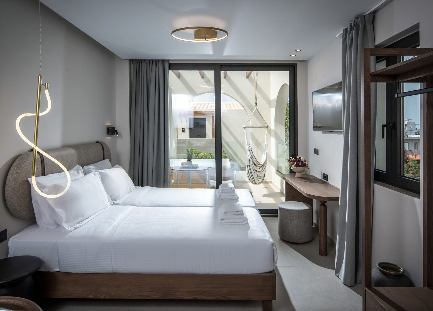 Disappointing Stay – Not What We Paid For We arrived late on the first day and already noticed major discrepancies from what was advertised. The air conditioning didn’t work at all (wouldn’t even turn on), and instead of the double bed we paid for and specifically chose, we found two single beds pushed together. The night was hot and noisy, and to make matters worse, the outdoor swing featured in the listing (a key reason we chose this hotel) was missing. We reported everything to reception the next day. A staff member, Maria, visited our room, confirmed the AC was broken, and explained that the swing was "being washed" and would be available on Monday as it was the weekend. We decided to be patient. We were promised that the beds would be joined properly with a mattress connector the following day (Sunday). But when we returned to the room in the afternoon, nothing had been done: the AC still didn’t work, the room hadn’t been cleaned, there was no connector, and still no swing. We reported it again. The receptionist, although extremely kind, was shocked nothing had been addressed. She later visited the room herself, bringing a fan (which only blew warm air), a housekeeper to fix the bed, and finally — a swing borrowed from a sister hotel. We appreciated the effort. However, shortly after, we were told that our room could not accommodate a swing at all, and only two rooms in the entire property actually had that feature — both of which were occupied. (This swing was clearly shown in the listing and influenced our booking decision.) The next day, the manager offered us a new room with working air conditioning and a double bed — but again confirmed there was no way to provide the swing. Tired and frustrated, we accepted. However, the new room also had two single beds pushed together with separate mattresses and duvets. At least the AC worked this time — but it was extremely loud, making it hard to sleep. Again, we reported this, but at this point we were exhausted from chasing after basic comfort. The manager tried to offer compensation in the form of free breakfasts or dinners at a sister hotel, but all we really wanted was what we paid for: a quiet, air-conditioned room with a proper double bed and the outdoor swing shown in the listing. We suggested a fair refund for the two nights of inconvenience, in exchange for not leaving a negative review. She refused, saying she wasn't obligated and that we were just "complaining" and rejecting her offers. We packed our things and left the day before our planned check-out, completely disappointed and stressed. We want to acknowledge that both Maria and Marina from the staff were very polite and did their best to help under the circumstances — unfortunately, the situation was beyond their control. I strongly advise potential guests to be cautious when booking this hotel. There is a real risk that you will not receive what was advertised or what you paid for. We stayed in two different rooms and never received what was promised in the listing.