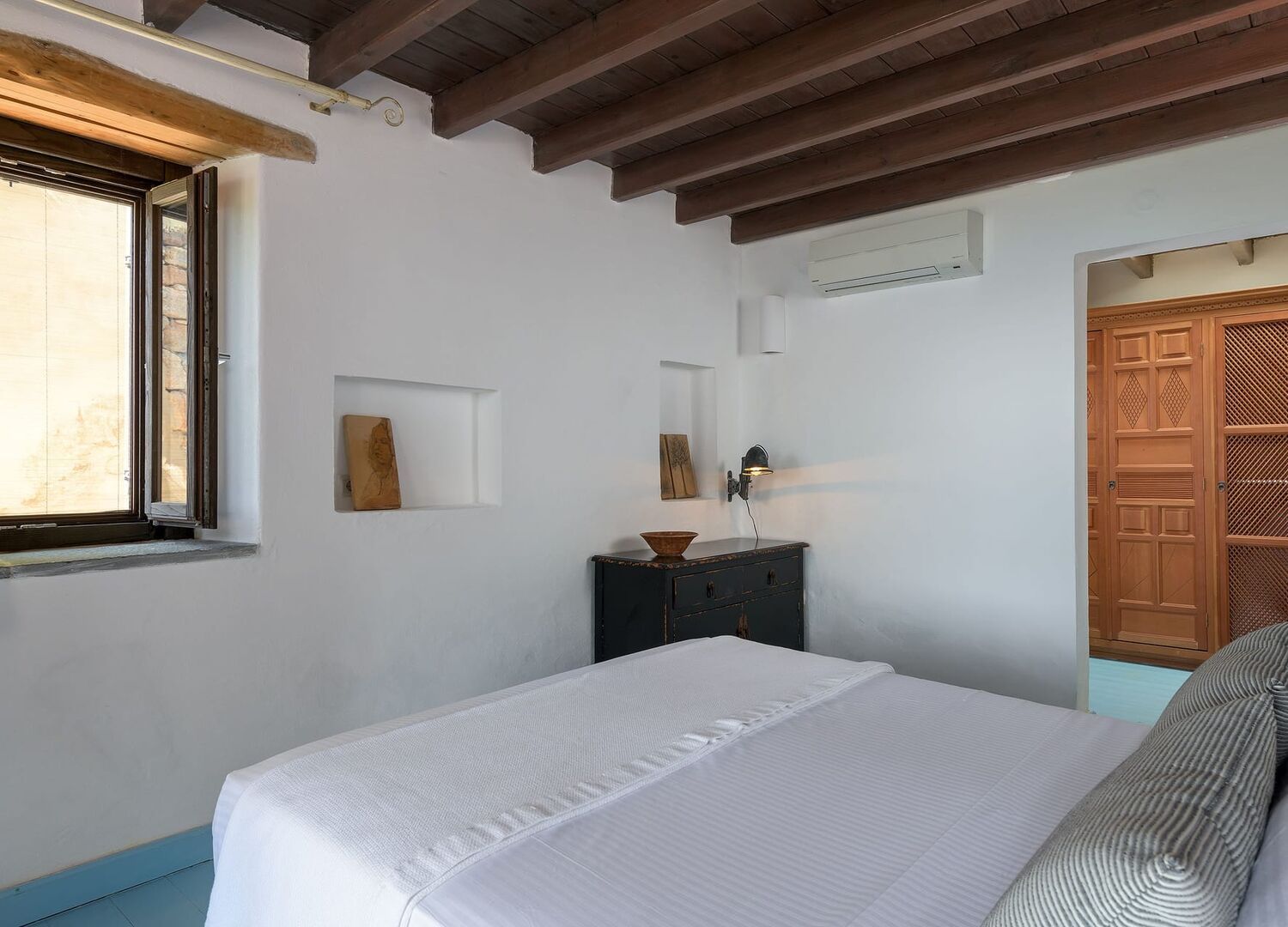 Small skylights decorate the areas connecting rooms. The rough building surface, which blends with the natural terrain, and is clearly influenced by the old farmhouses of the area, is made up of uncoated local stone (atsakopetra) and coated surfaces using lava and lime.