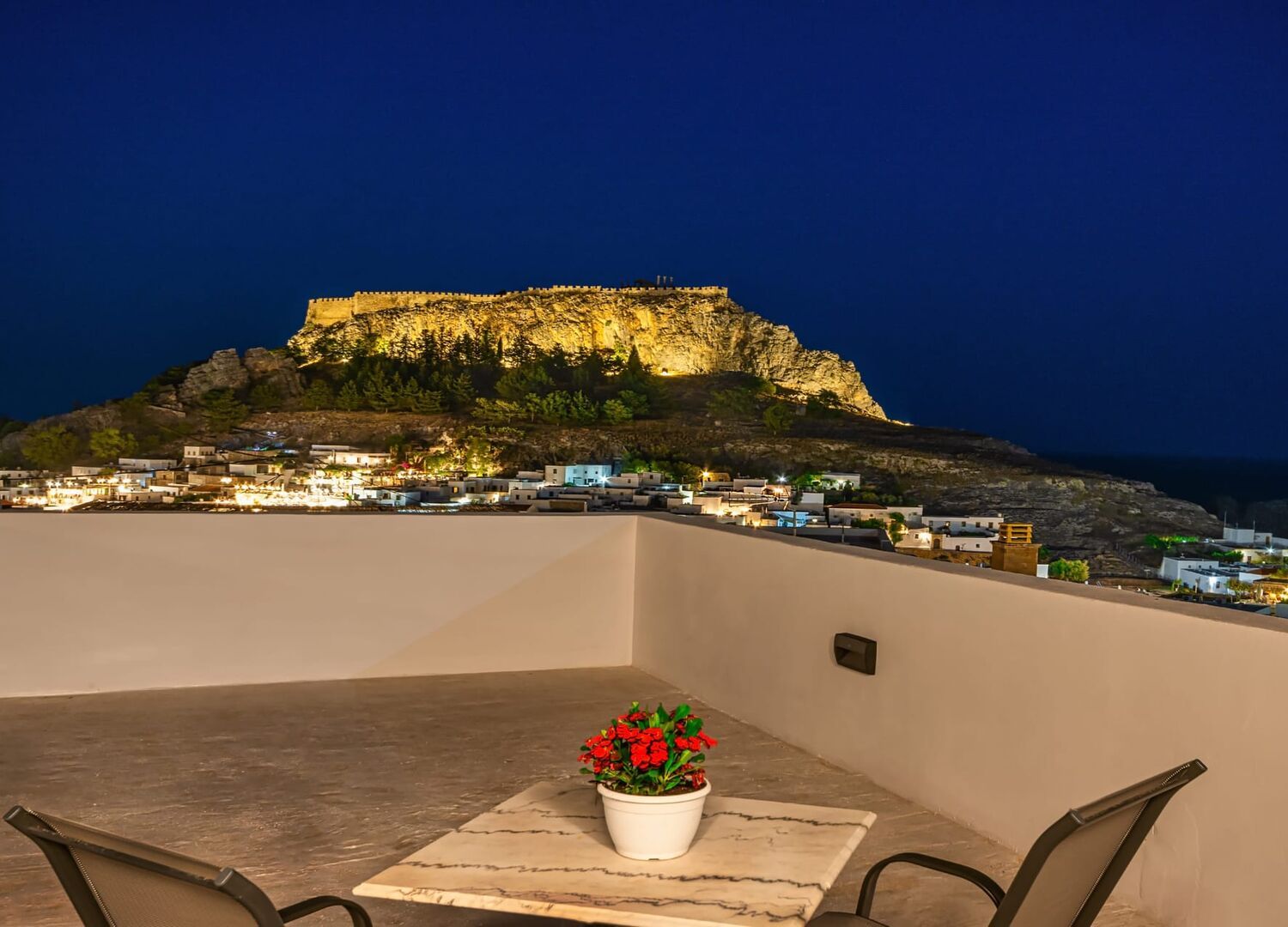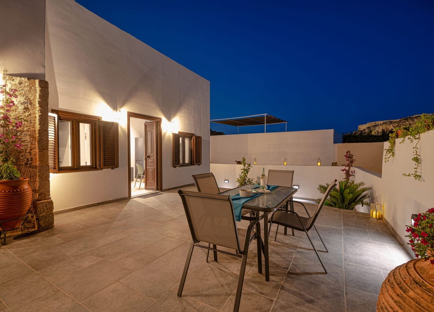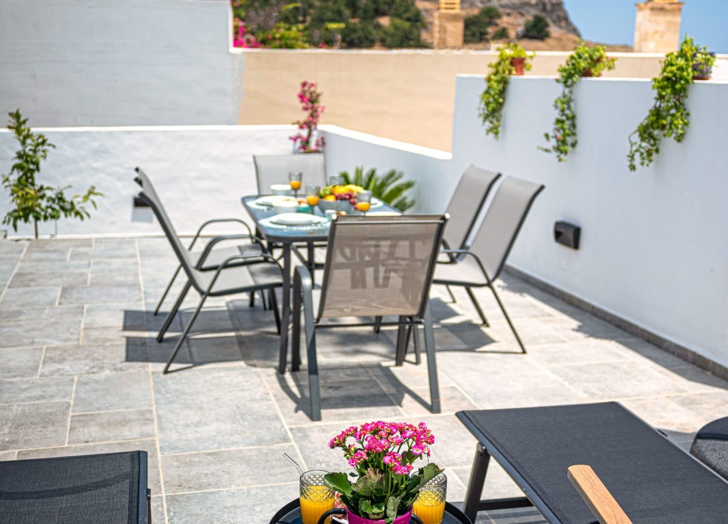 Step outside to your private terrace, where you can unwind and enjoy the stunning Lindos Acropolis villa views and the sparkling waters of the Aegean Sea.