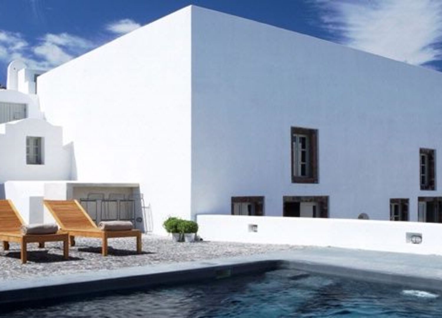 Villa Fabrica Santorini is a luxurious and unique hotel located beneath the Castle of Pyrgos in Santorini. The property features a sleek and minimal loft-style design with traditional Santorini architecture, including polished cement and eco-friendly materials. The villa offers generous outdoor space with two pool terraces and various alfresco arrangements. Guests can enjoy stylish and luxurious accommodations with unbeatable comfort and effortless elegance. The villa can be split into two separate private villas or rented as a whole for special events such as weddings or family reunions. Additionally, Villa Fabrica Santorini hosts week-long spa retreats and cooking schools off-season.