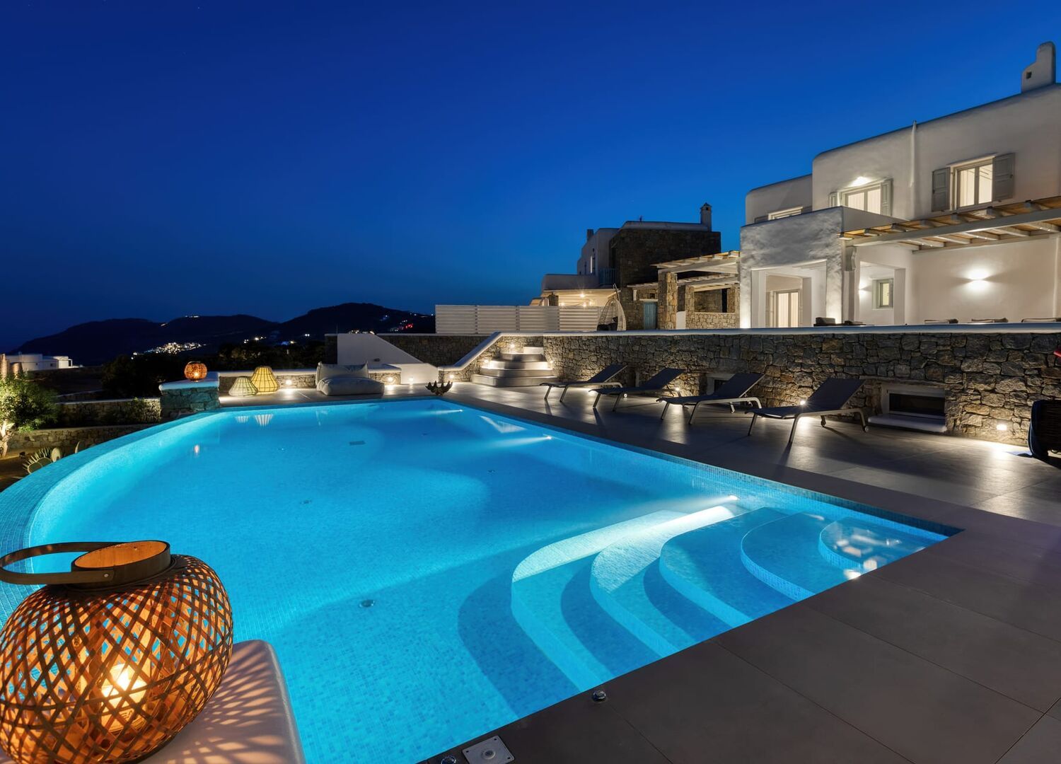 Villa Hadi is a new luxury accommodation option in Mykonos, situated between the bay of Kalafatis and the popular Kalo Livadi beach. Ideal for families and groups, this villa offers 6 en-suite bedrooms, a fully-equipped kitchen, lounge areas, an infinity pool with a jacuzzi, a basketball court, and a BBQ area. Located in a relaxed and comfortable environment, Villa Hadi is perfect for those looking for a luxurious yet unpretentious experience.