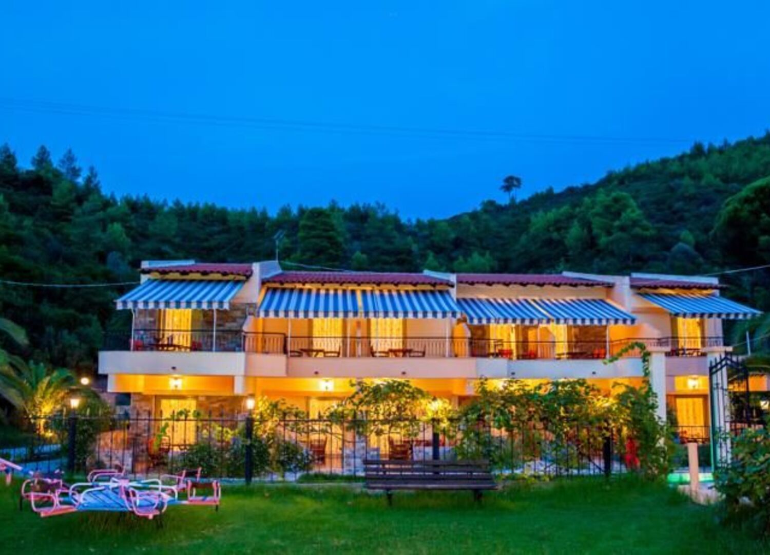 Within a garden of grass and palm trees dominated by a strong element of colorful “Pelion” stone, the guesthouse has comfortable, bright, fully equipped studios surrounded by roses and jasmine.