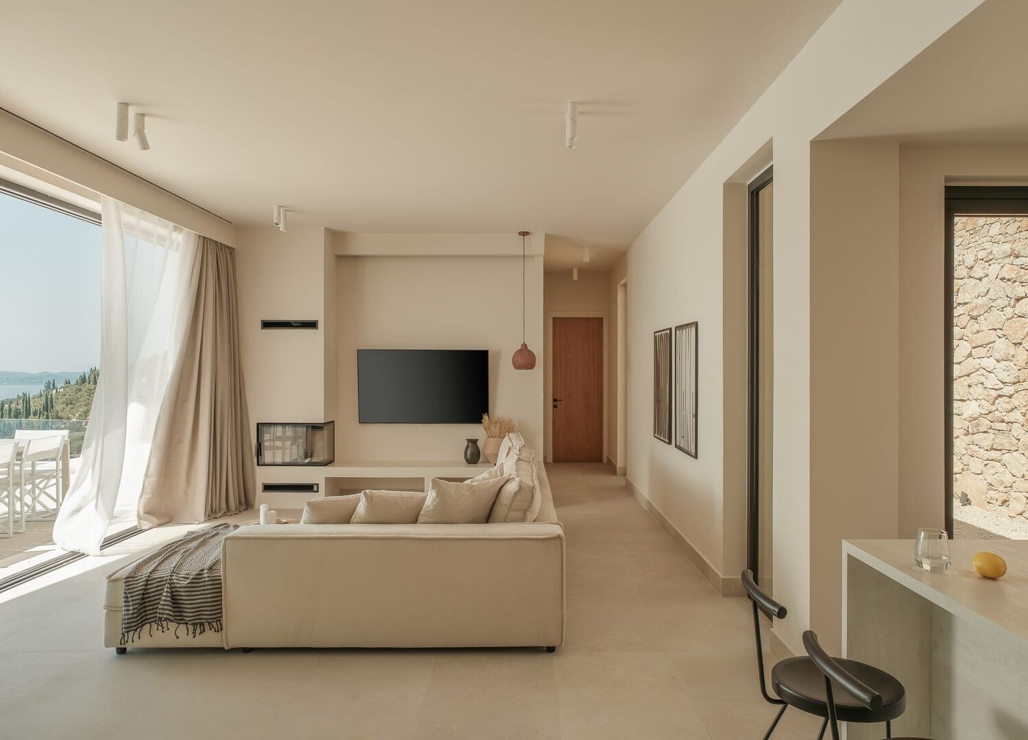 Positioned on the mountain hill above the famous Kalami bay, Noùs is a  three-bedroom villa equipped with all the amenities that will make your holiday unforgettable. With a minimal interior design and a fully equipped outside area, Noùs will make you feel right at home. Relax on the grand terrace, enjoy an al fresco dinner, take in all the views and you will definitely want to come back!