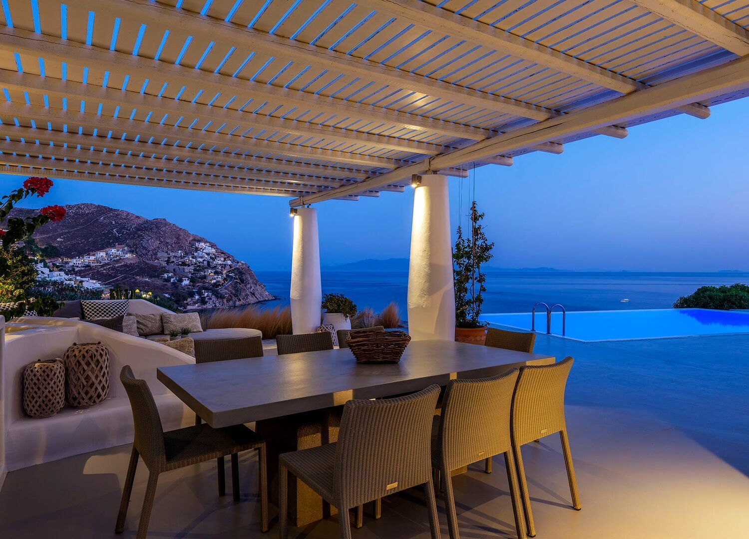 I’ve stayed here several years in a row and it’s ideally located with amazing views. Literally overlooking - and steps away from - Elia beach, yet secure with a gated entry and privately located at the top of the hill. The house is pristine, with a variety of separate indoor and outdoor seating areas, dining areas, porches and balconies. Great for a group of adult friends for a week away.
