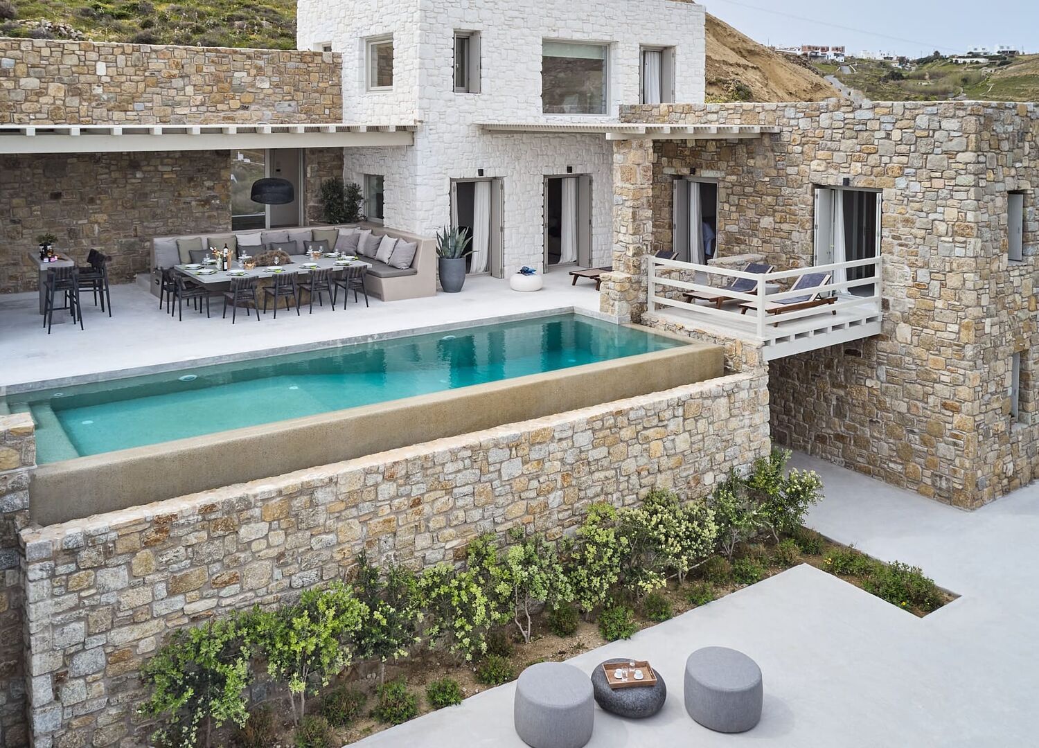An independent luxury villa that extends over a plot of seven acres, for exclusive use in Kalo Livadi, Mykonos.