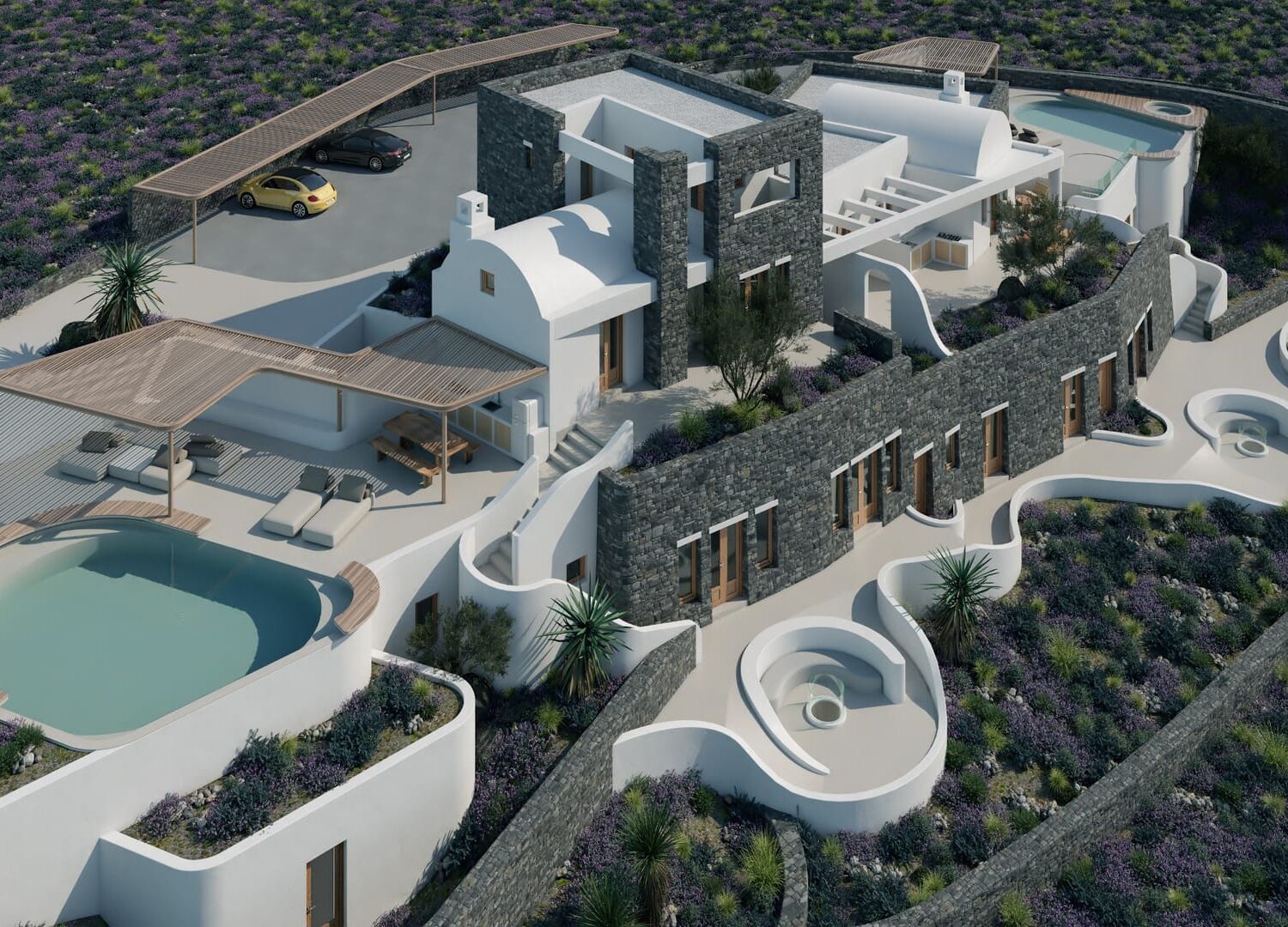Outdoor living and dining are a highlight. Each spacious villa has an additional space of up to 389 sq. m. of landscaped gardens on a prime elevated position perched on a cliff, offering the best views of the vast Aegean Sea, neighbouring Greek islands, and Santorini’s magical sunsets.