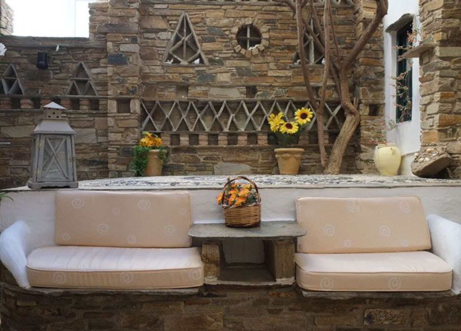 In a beautiful breakfast “salon” with view to the main port of Tinos and the island of Syros, there is a coffee snack bar where our guests can enjoy breakfast buffet that includes homemade marmalades and during the evening hours coffee & refreshment, homemade “teaspoon” sweets or light food and drink.