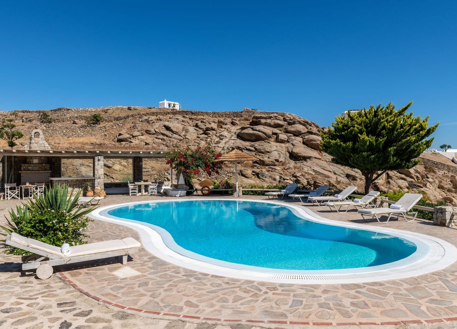 Yalos Mykonos private apartements is a complex of traditional Myconian furnished apartements including sea views and a shared swiming pool Located on Pouli hill next to the famous beach of Ornos