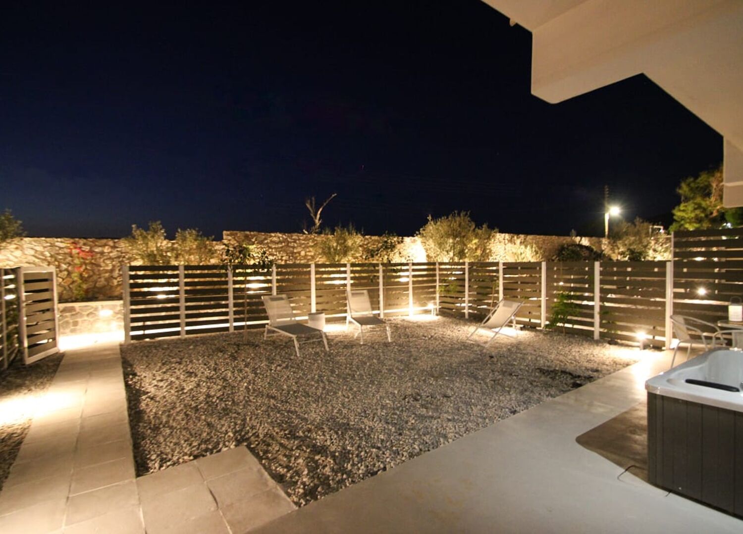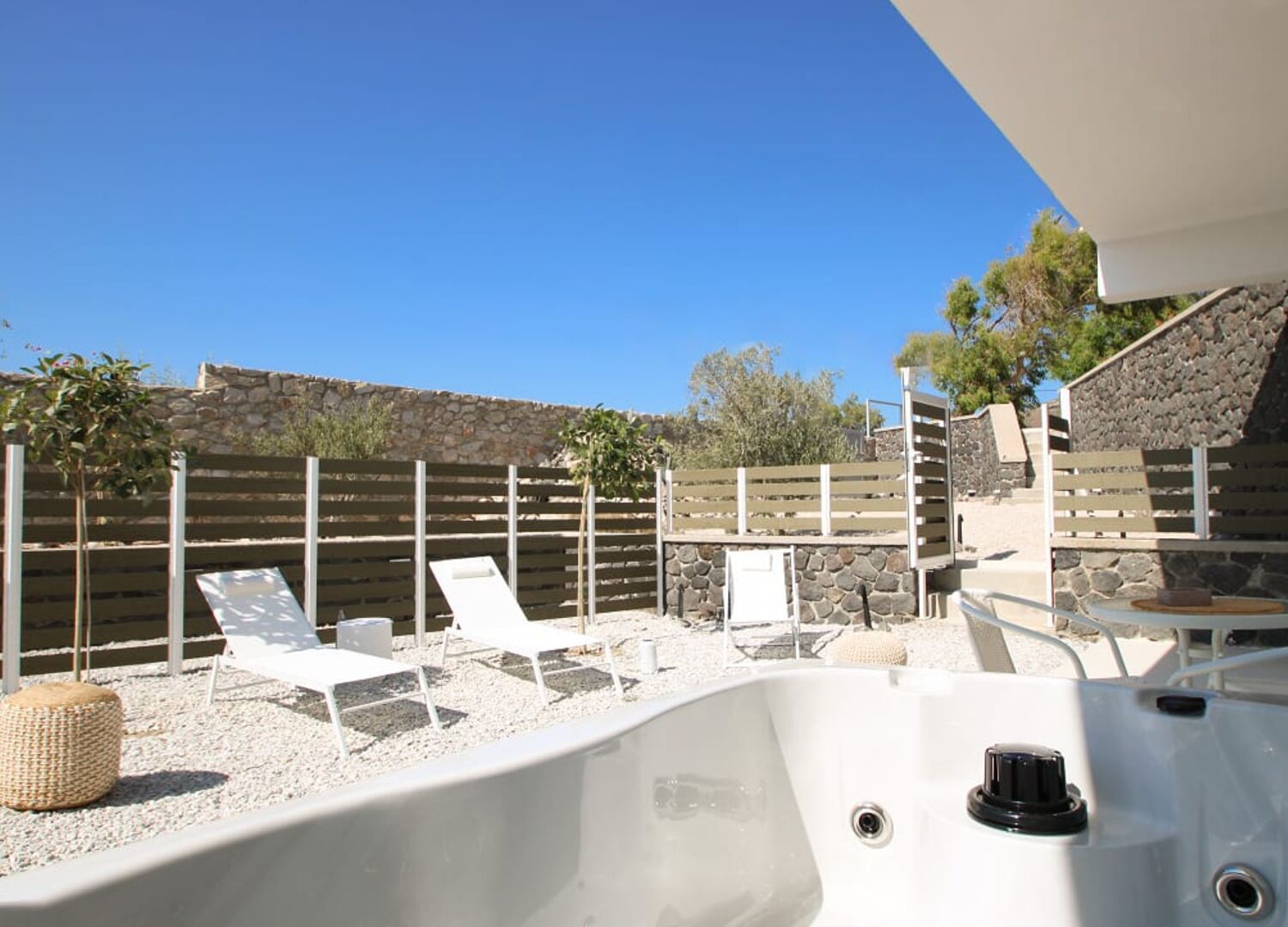 This intimate collection of seven elegant suites is designed for travelers seeking privacy, comfort, and a more authentic island experience. Every suite features its own private outdoor hot tub, perfect for unwinding under the sun or stars, whether you're gazing out at the Aegean Sea or enjoying the serenity of a quiet garden setting.