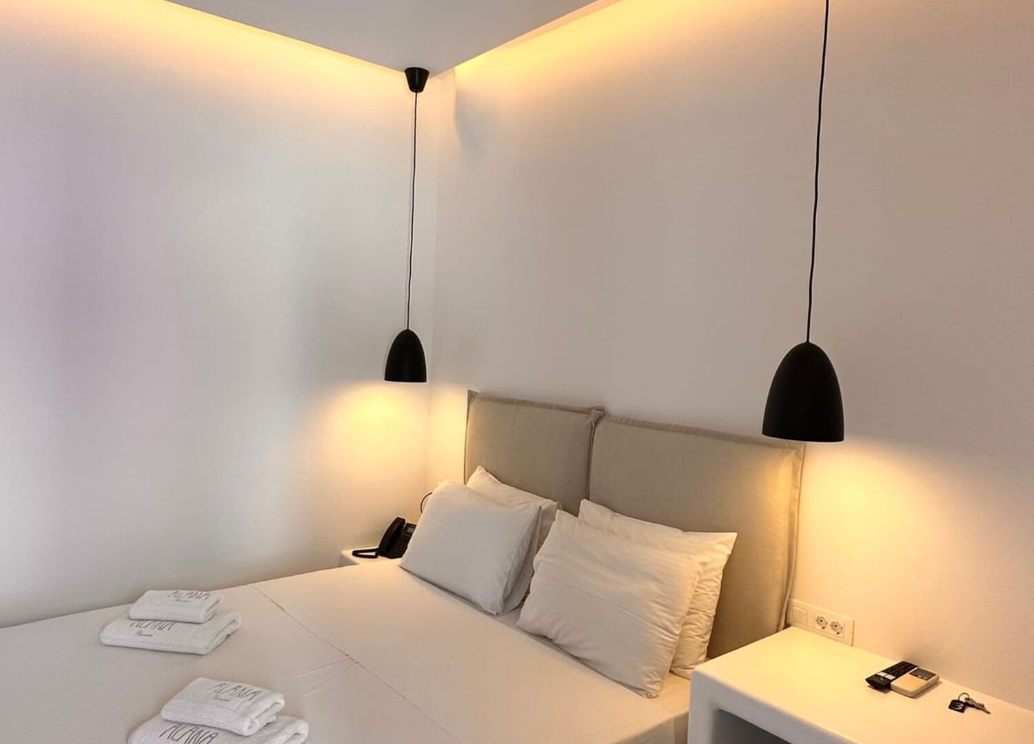 We stayed at Alana Mykonos for 3 nights. It is in the heart of Little Venice, easy to get to and from everywhere, and the rooms are small but very comfortable. The bed is also nice. The room was spotlessly clean, cleaned every day. Our requests, like extra coffee capsules, were met quickly. There is no reception; you enter the rooms with a password, which actually makes late check-in easier. I liked that you can enter and exit without carrying a key. A 10/10 hotel in every way. I would stay there again. Additionally, the nearest parking lot is 15-20 minutes away on foot, but there is nothing the hotel can do about it.