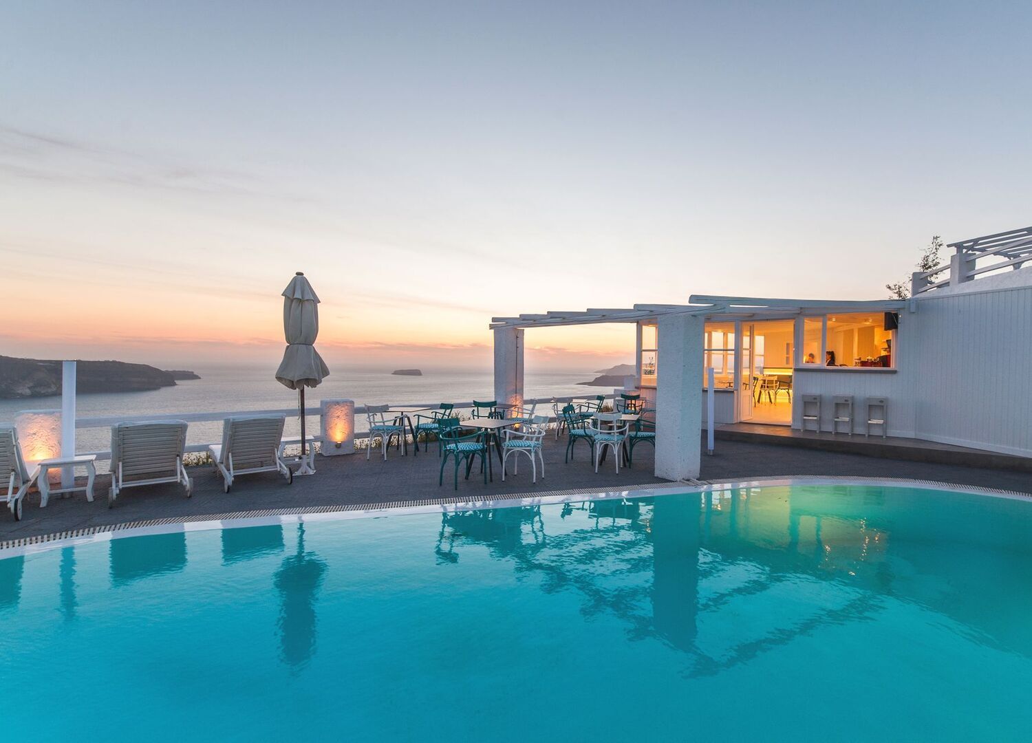 Artemis Suites in Megalochori is a place of quintessential Santorinian architectural style and elegance. Situated in a privileged location exactly on the edge of the Caldera and 250 meters above the Aegean sea. Overlooking the volcanic islets of the Caldera basin and with a direct panoramic view to the world famous sunset of Santorini, this exclusive hotel serves as the perfect hideaway.