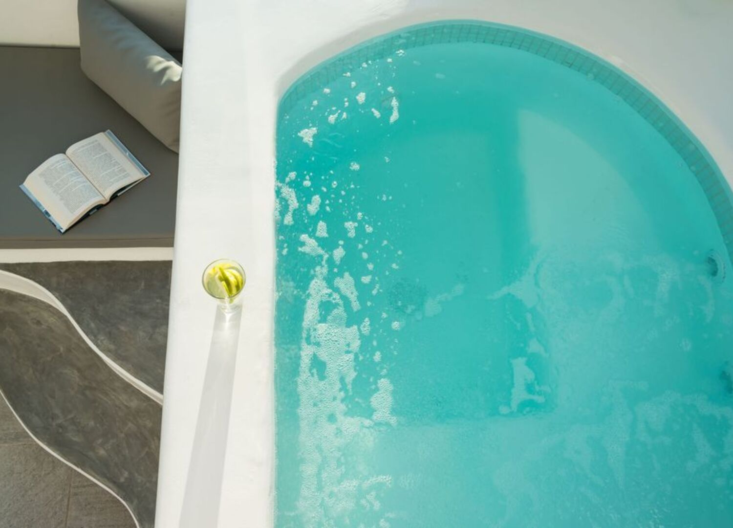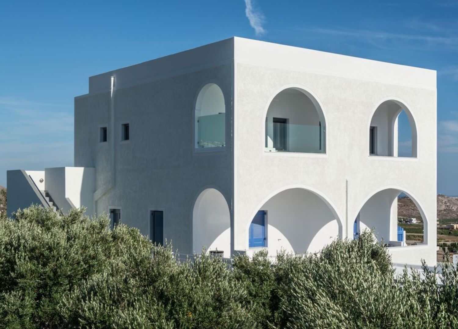 This modern residence is newly-built based on the traditional Cycladic architectural style and overlooks the amazing caldera and the beautiful island of Aspronisi, from which the Villa gets its name; the island covers a small piece of land which was once part of Santorini, before the volcanic eruption in 1660 BC.