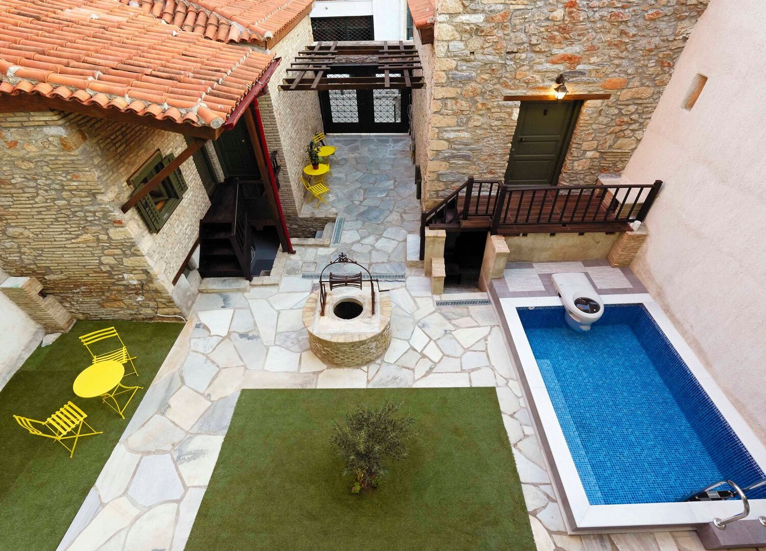 Athenian Residences is an elegant boutique hotel located in the heart of Athens. The building itself is very unique, it combines classic Athens and luxury living by having two stone-build maisonettes and three modern apartments joined by a private yard with pool.