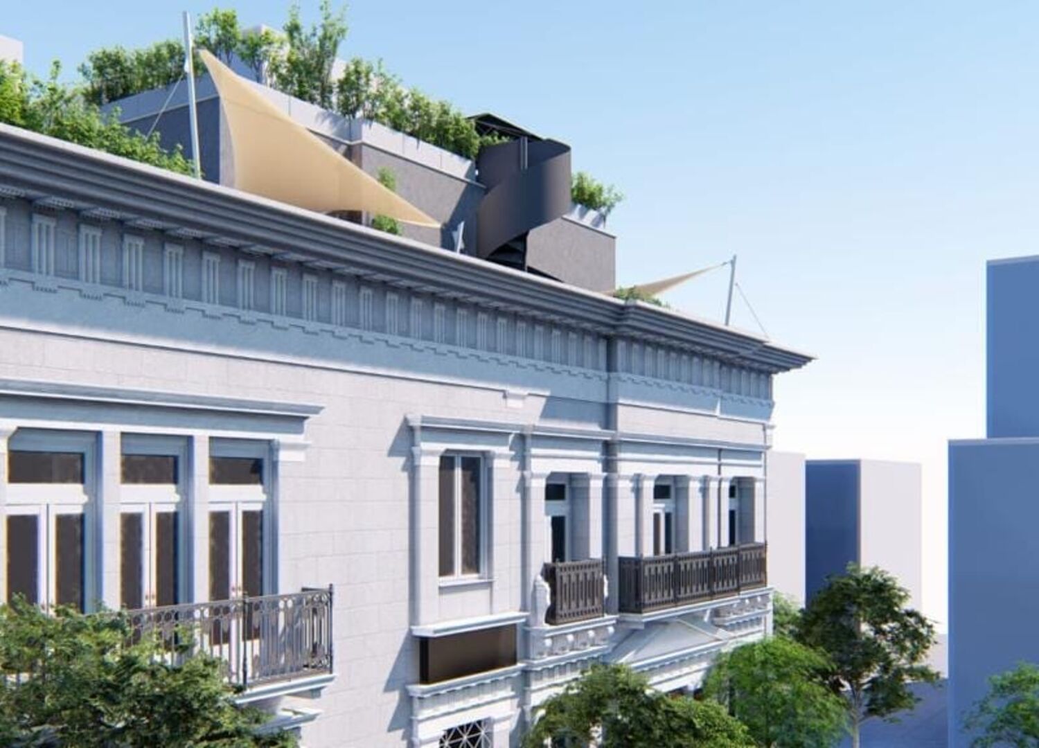 It is a majestic and modern building – a true architectural jewel for the city of Athens. Harmoniously blending the past with the present, it combines elements of minimal design with contemporary aesthetics and the original elements of the building that have been conserved, such as the gorgeous marble staircase, delicate ceiling embellishments, the floors and walls in some of the interior spaces.