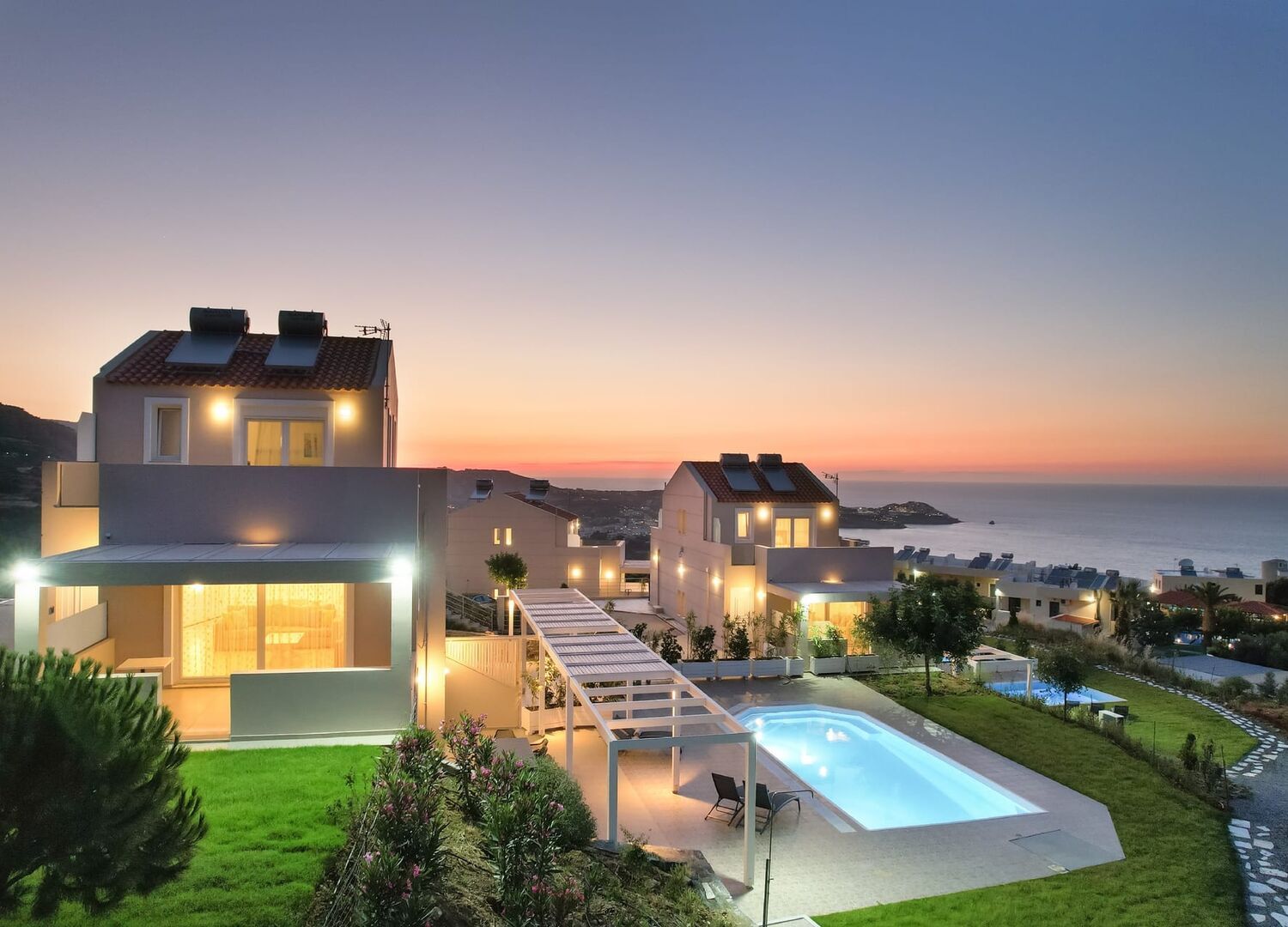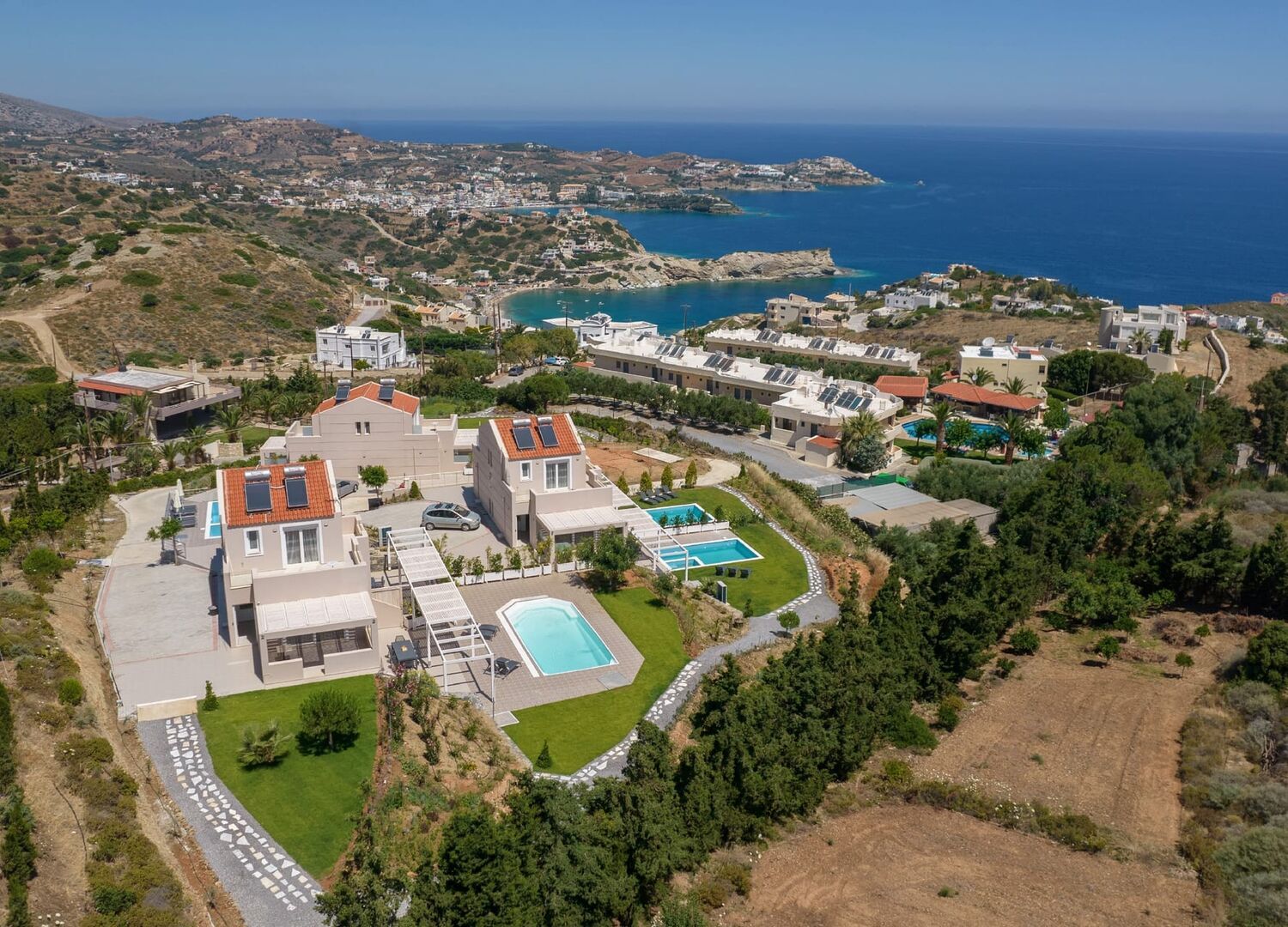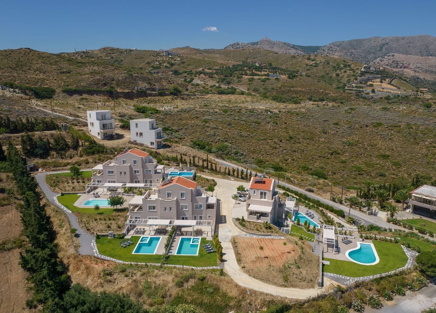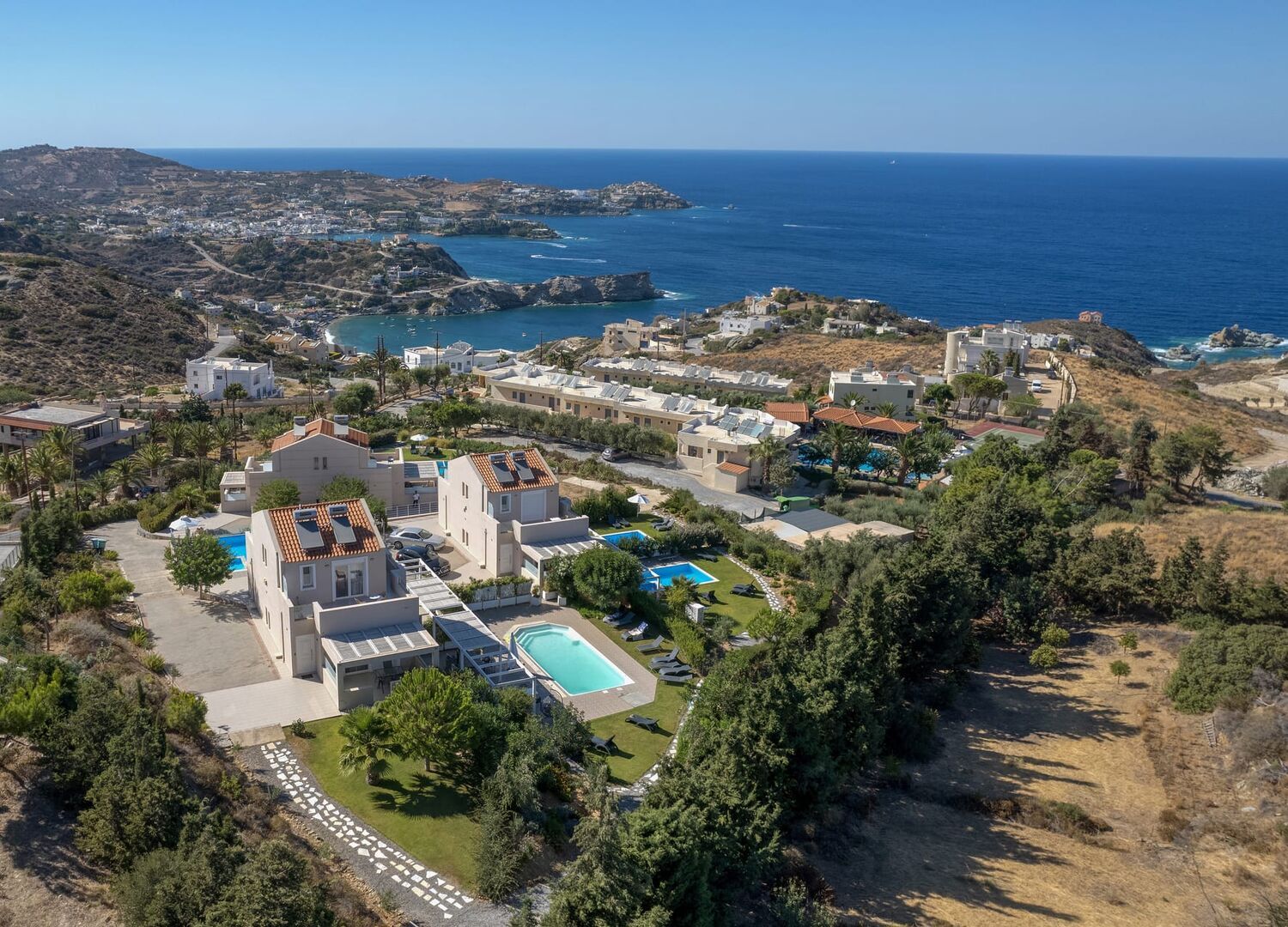 "Blue Hills" complex is a family business that was completed in 2021. It consists of six three-level villas in three different buildings. The villas are characterized by exquisite decoration, the spacious garden in combination with a private swimming pool, and amazing views of the sea. Moreover, the villas feature a fully equipped kitchen, comfortable living room, large bedrooms, bathrooms, private parking, and a security system. Undoubtedly, "Blue Hills" constitutes the appropriate destination for an unforgettable experience in Crete.