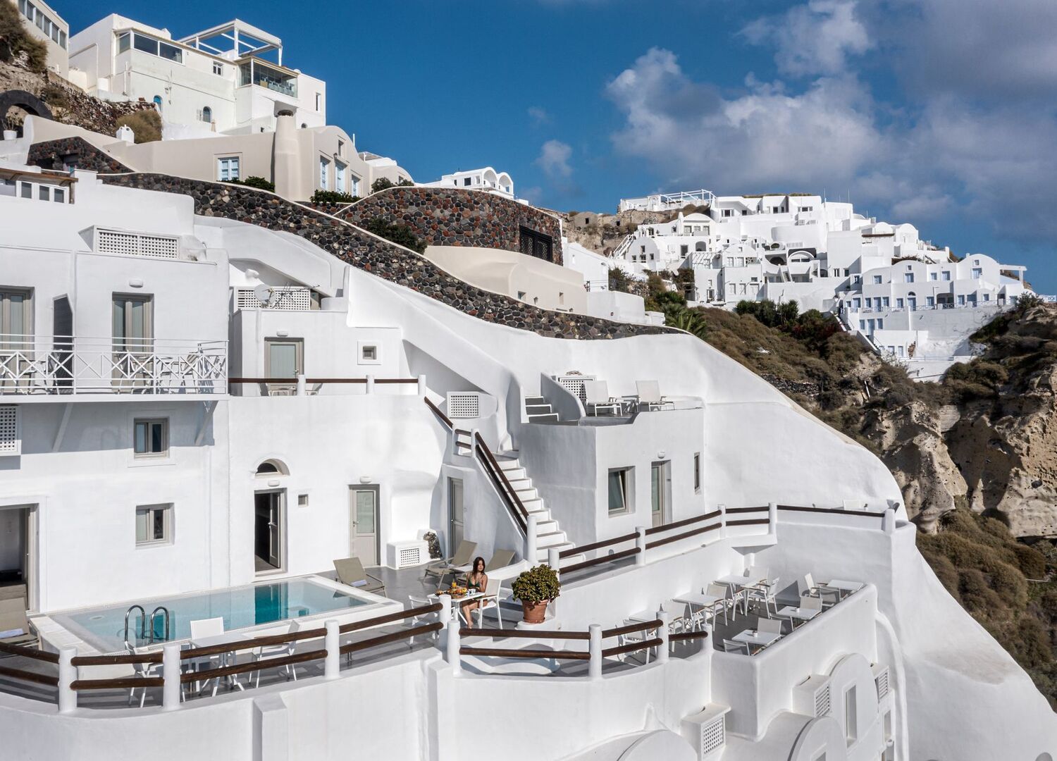 Situated in the centre of Oia, Caldera Premium Villas overlook the volcano and feature a swimming pool with Cycladic décor. Room balconies offer caldera and Aegean Sea views.
