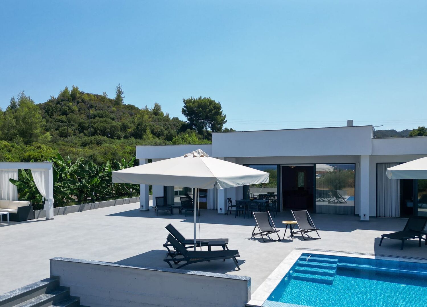 A unique brand new (2025) complex of 5 modern villas, offering the perfect blend of comfort, luxury, and tranquility surrounded by a picturesque forest. Located just 150 meters from the scenic village of Hanioti in Halkidiki and 800 meters from the beach, our complex provides seclusion and serenity for your ideal getaway. We invite you to enjoy the tranquil atmosphere and comfort in our exclusive villa complex.