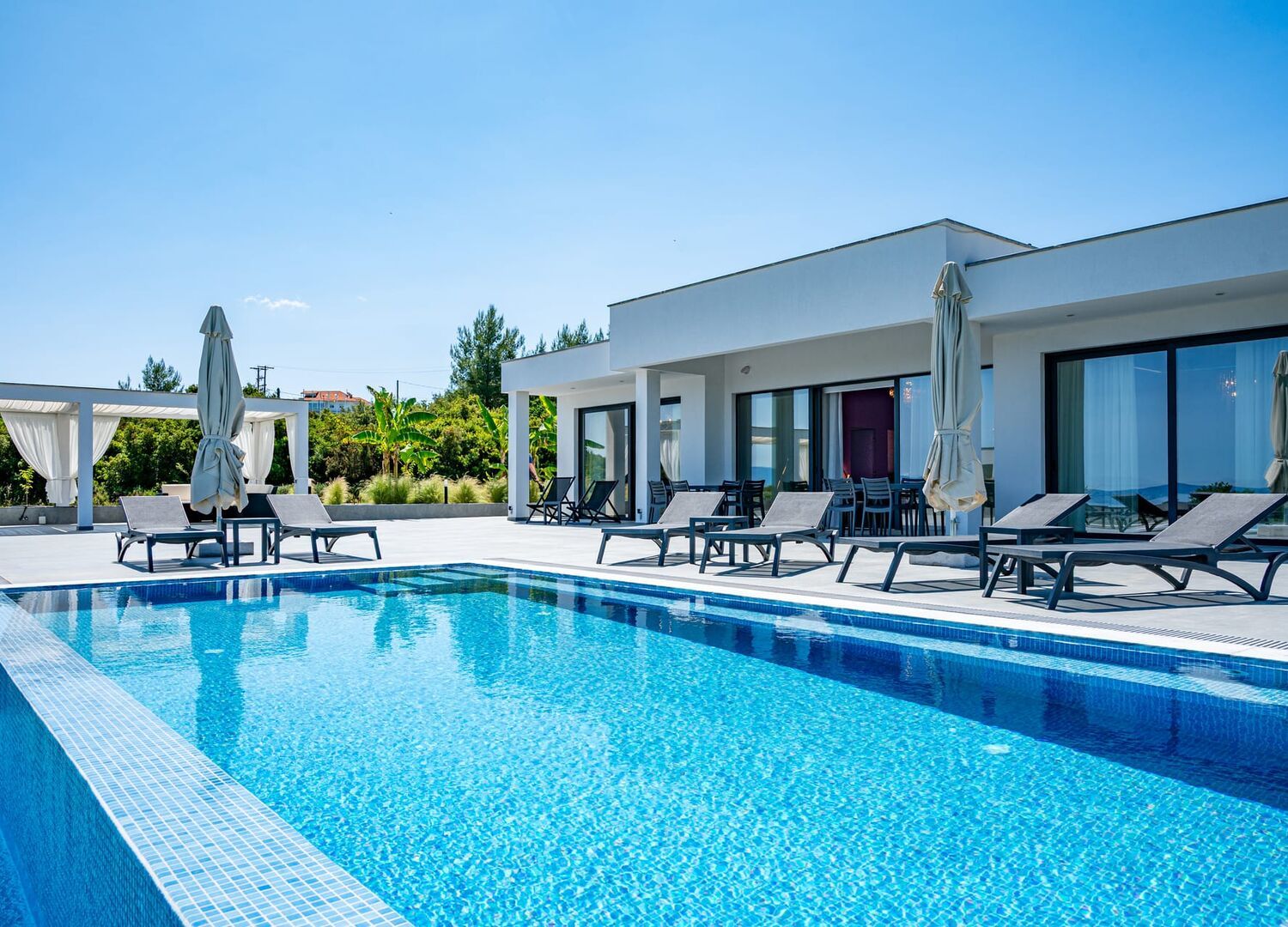 Continent Villas is a brand new complex of 5 modern villas located just 150 meters from the village of Hanioti in Halkidiki. Surrounded by a picturesque forest, the complex offers a perfect blend of comfort, luxury, and tranquility. With seclusion and serenity, it is an ideal getaway for those looking to relax and unwind. The beach is just 800 meters away, providing easy access to the sea. Enjoy the tranquil atmosphere and comfort in this exclusive villa complex. Address: Chanioti Chalkidiki - Hanioti.