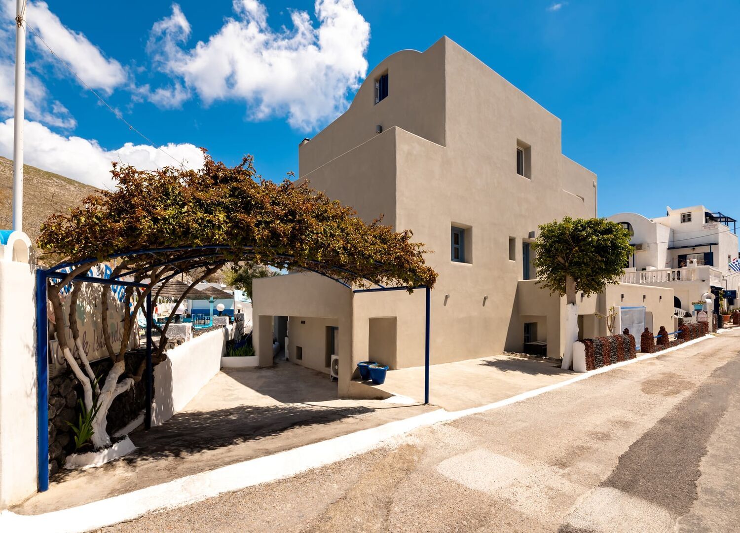 Fortuna Perissa is a hotel located in Santorini, just 50 meters away from the black beach of Perissa. The rooms are decorated in shades of white, blue, and gray and come equipped with basic amenities. Each room also has its own balcony. Perfect for those looking for a comfortable and convenient stay near the beach.