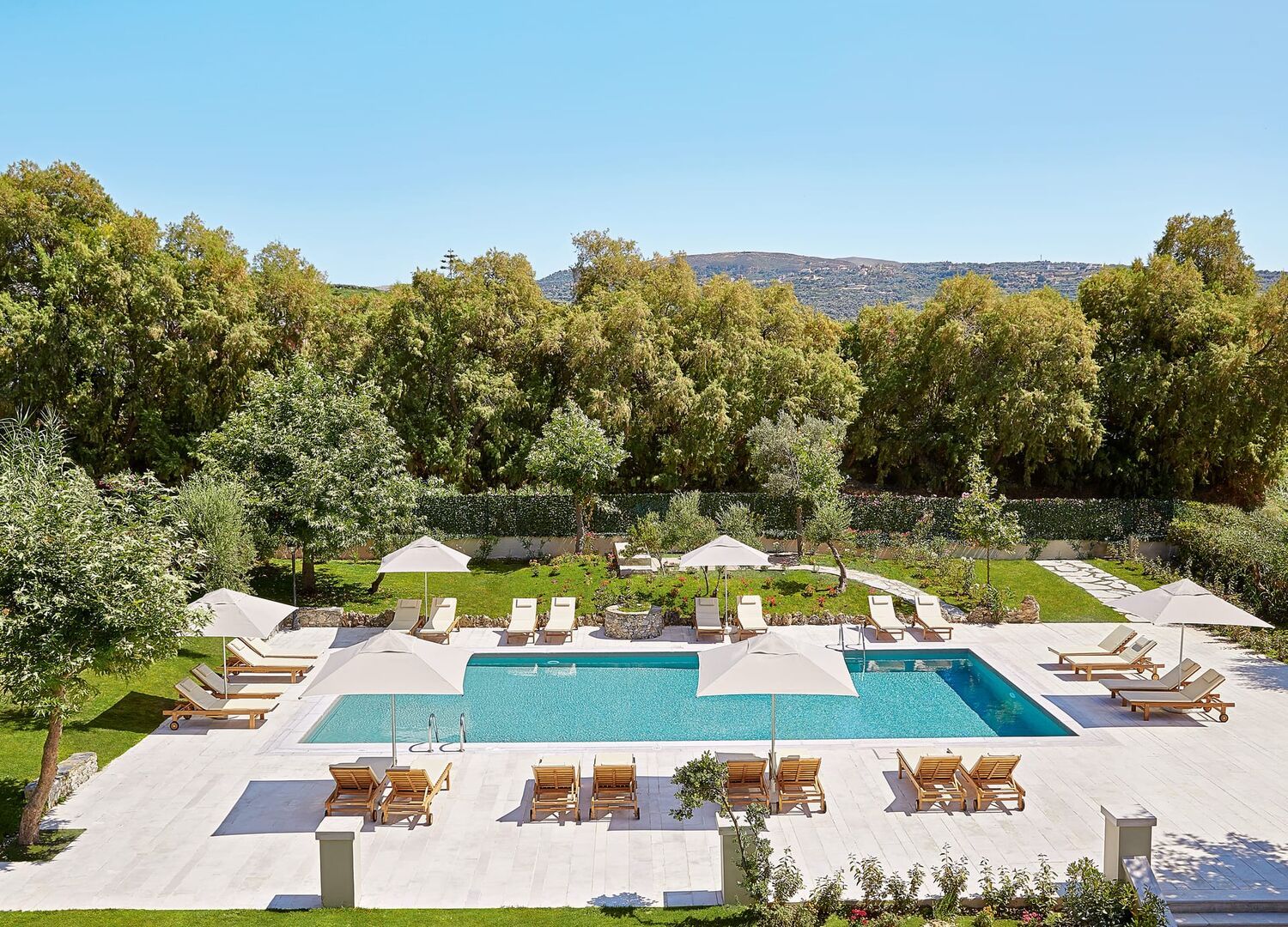 The Grecotel Villa Oliva is a luxurious retreat nestled in the outskirts of Rethymno Town in Crete. The hotel offers a harmonious blend of traditional architecture and modern amenities, providing guests with a truly personalized and elegant experience. Set amidst a landscaped garden estate, the cozy retreat features spacious layouts, luxurious amenities, and indulgent bonuses, making it the perfect refuge from today's fast-paced living. With its arched doorways, wrought-iron balcony railings, shaded stone-paved courtyard, and veranda, the Grecotel Villa Oliva exudes grace and elegance.