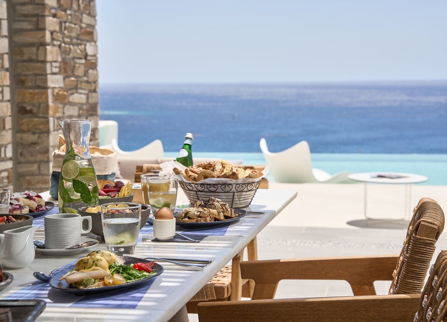 This is possibly the best place to stay in IOS - and this comes from someone who has visited the island for too many years ! Those suits are newly built with great attention to detail - modern and ergonomic interiors , beautifully arranged and super clean .Private pool is very large and views are to die for ! Breakfast is served as room service at selected time slot - and it s of great quality - I loved the eggs Benedict in particular ! All Staff are extremely kind , professional but at the same time make you feel so welcomed ! Location is the best , right at the cliff of Mylopotas beach - you get this sense of tranquility , peace and privacy while being only 5’ from Chora , several restaurants and Mylopotas beach which can be accessed by simply walking there ! Additonal benefit is that we could use the facilities of its sister hotel - IOS Palace Hotel & Spa which is adjacent to the Suites. Convenient private parking right outside the reception. If I could only vacation in one place for the next years , this would be it ! Only downside is that the Suites can be a bit unsocial - they are too beautiful to leave and enjoy IOS island :)