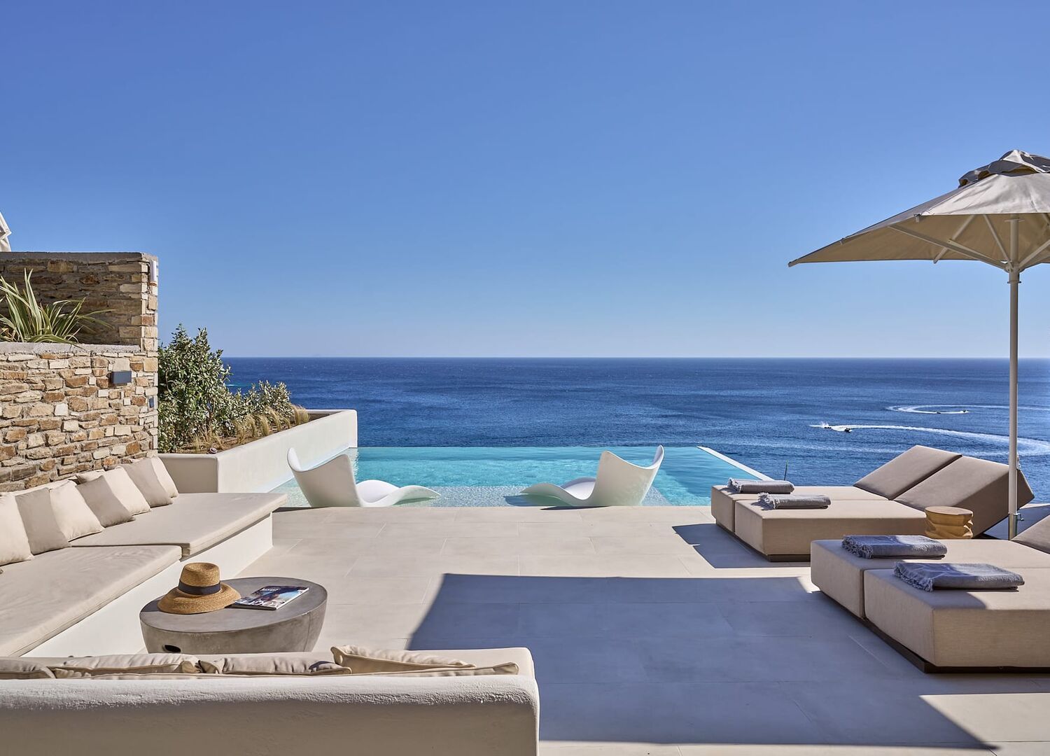 Ios Grand Pool Suites, the sister hotel of Ios Palace Hotel & Spa, focuses on a “living the infinite blue” experience offering large private pools and a privileged outdoor setting.
