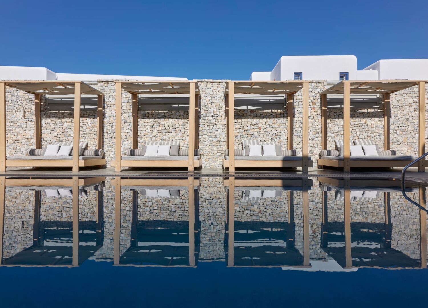 Mykonos Kosmoplaz Beach Resort is a luxurious hotel located right on the sandy beach of Platys Gialos, just 2 miles from Mykonos Town. Guests can enjoy stunning views of the crystal-clear waters and relax in the beautiful surroundings. The hotel offers a range of amenities and services to make your stay unforgettable. Address: Mykonos - Platis Gialos.