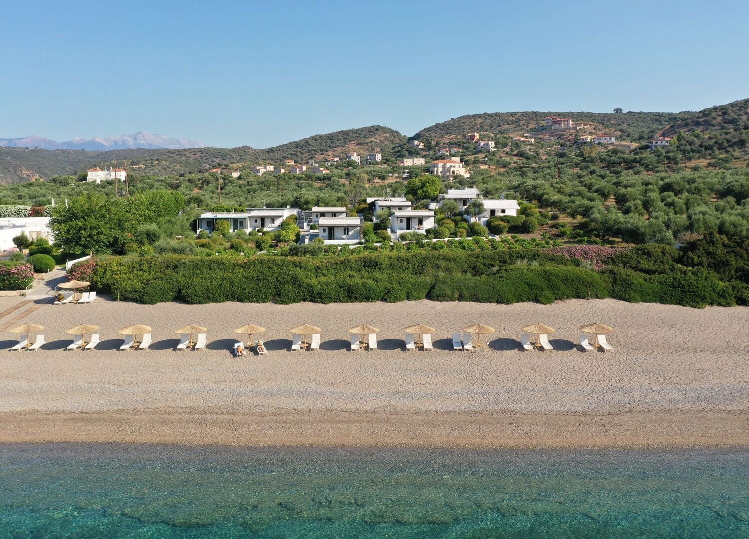 Niriides Villas is a charming complex of 11 individual bungalows located on a practically isolated sandy beach in Gythio - Selinitsa. The luxurious and comfortable bungalows are designed in a local country style with authentic paintings and handmade articles of blue glass. Each bungalow has a big veranda covered with pergolas, perfect for dining and relaxation, offering a marvelous view of the picturesque town and the sea of the Laconia gulf. The complex is situated just 3 km from the town, providing guests with an unforgettable holiday experience.
