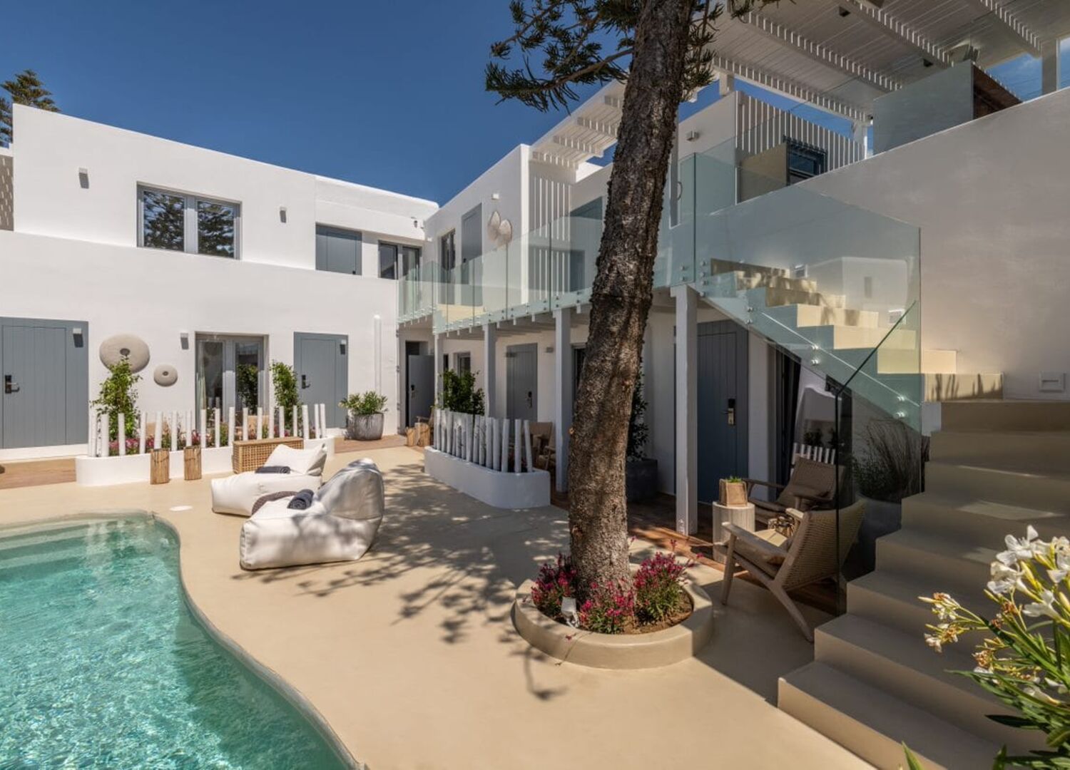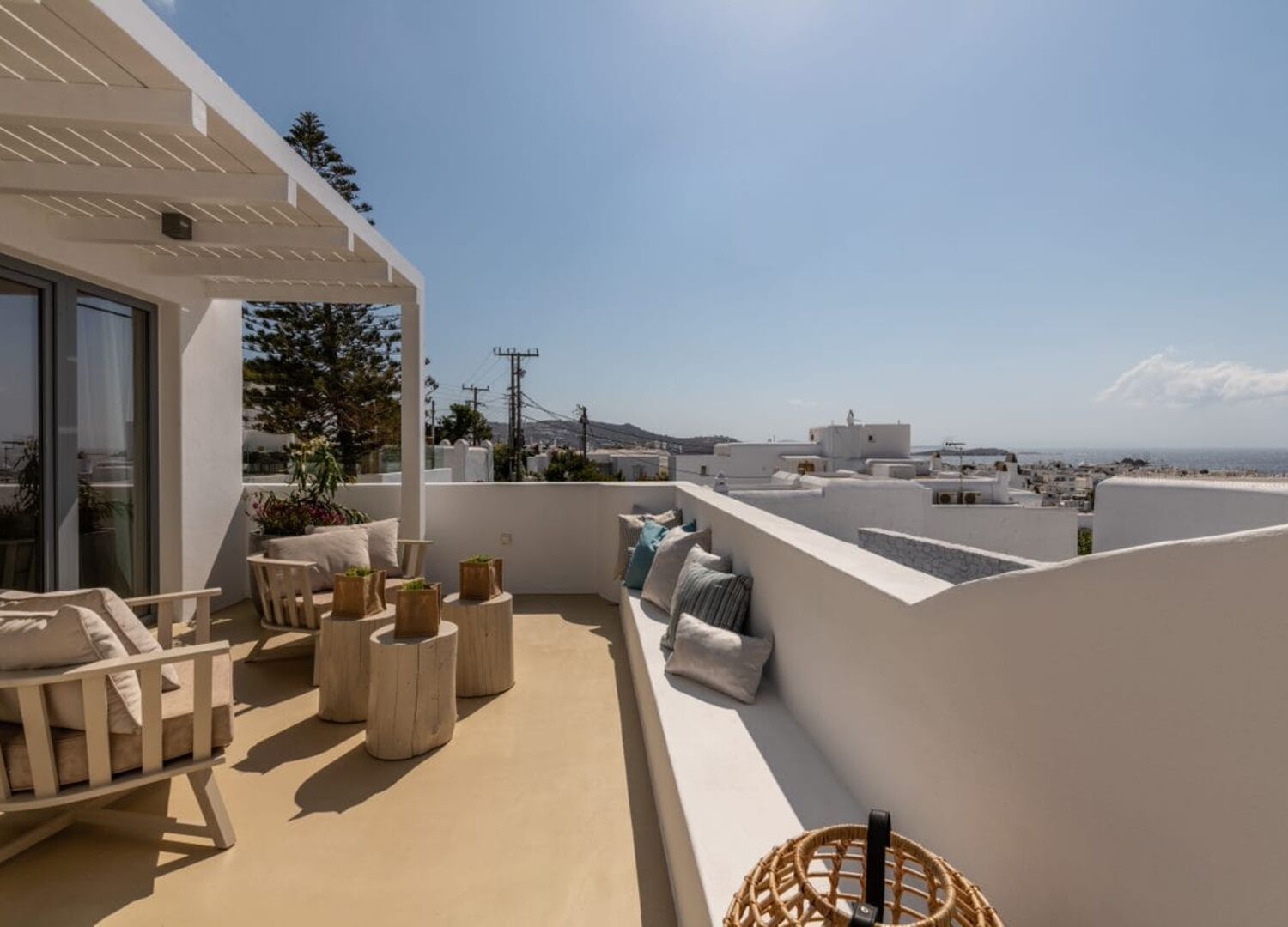 Oniro Suites is a luxury hotel located in the Mykonos City Center district of Mýkonos City, just an 11-minute walk from the beach. The hotel offers air-conditioned rooms with flat-screen TVs, some with sea views, and all rooms have private bathrooms. Guests can enjoy an outdoor pool on the property. The address of Oniro Suites is Mykonos - Agiou Ioannou, School of Fine Arts District.