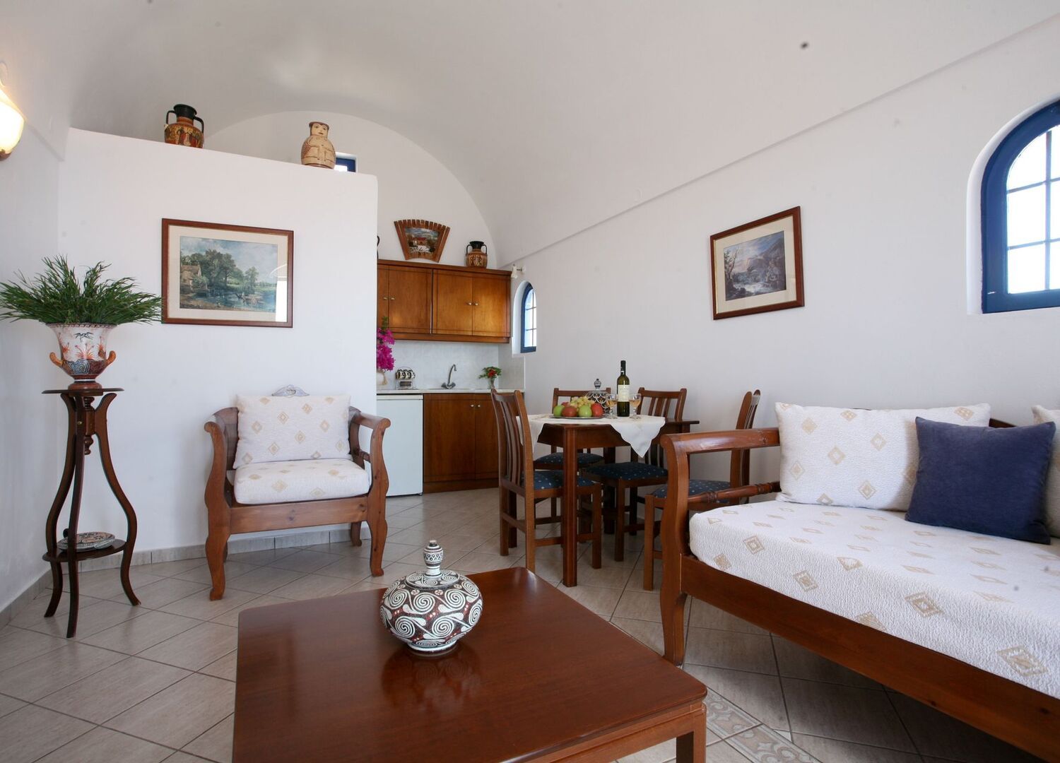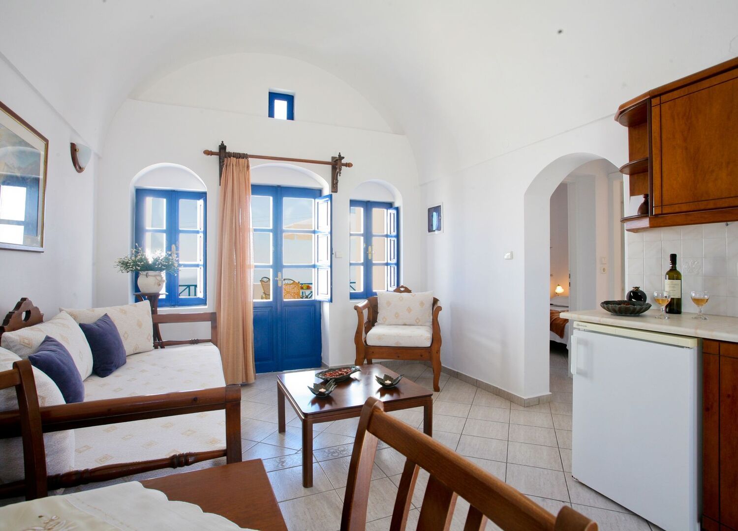Pergeri Apartments located in picturesque Imerovigli on the main road Imerovigli - Oia. It consists of 4 apartments of which 2 are and the other 2 apartments with 2 rooms. Cycladic architecture, traditional furniture, simple and elegant decor create an atmosphere that will offer romantic and pleasant stay.All apartments are self-contained, independent accommodate up to 4 people and they are ideal both for couples and families. They have air conditioning, TV, fully equipped kitchen, large verandas overlooking the sea. There is free wi-fi and parking.In Pergeri Apartments we care about your breakfast. It is daily fresh and plentiful , it is served on the terrace or, if desired , in your apartment.Daily cleaningThe bus stop is just 50 meters away and routes very often.