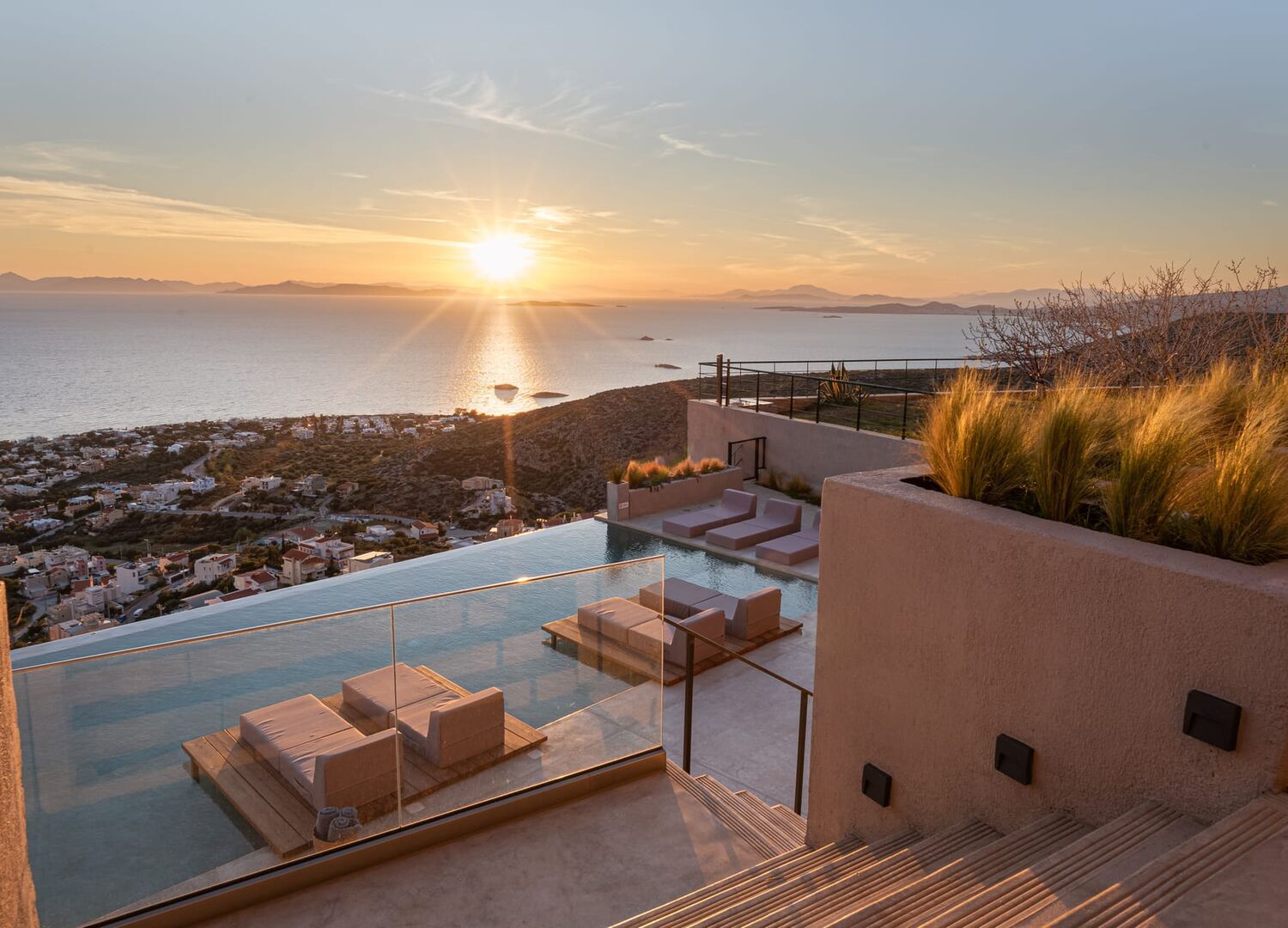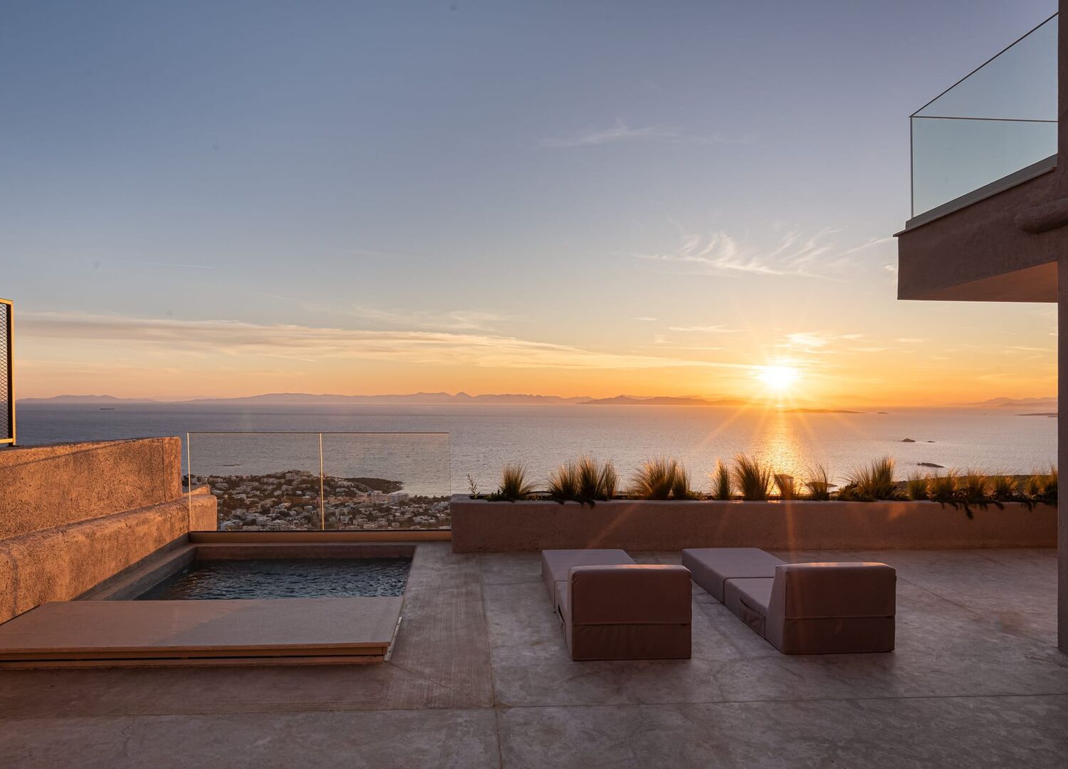 If you're looking for a spot to stay outside of Athens, this is it! Nestled on the hillside, Saronida Hills boasts a jaw dropping westerly view which produces stunning sunsets. Soak up the sun next to the infinity pool, or enjoy the view from one of the private (non heated) spas. Plenty of sun lounges and umbrellas around. Google has it listed as a hotel, however I feel like luxury serviced apartment is more accurate. There is no concierge (at least not when we stayed - access was managed remotely), however staff are onsite daily to do room servicing. They were very accommodating, and gave us a free magazine of more coffee pods. The rooms are modern, spacious and comfortable. The lights feel like they're out of the next century! Good bathrooms and AC. Pod coffee machines are provided however no cooking facilities (just stand provision of plates, cups, glasses, bowls and cutlery). This place is up a very steep hill and is rather remote, so you will want your own car to get here. Taxis will generally avoid it, but the odd one may help out but dont count on it.