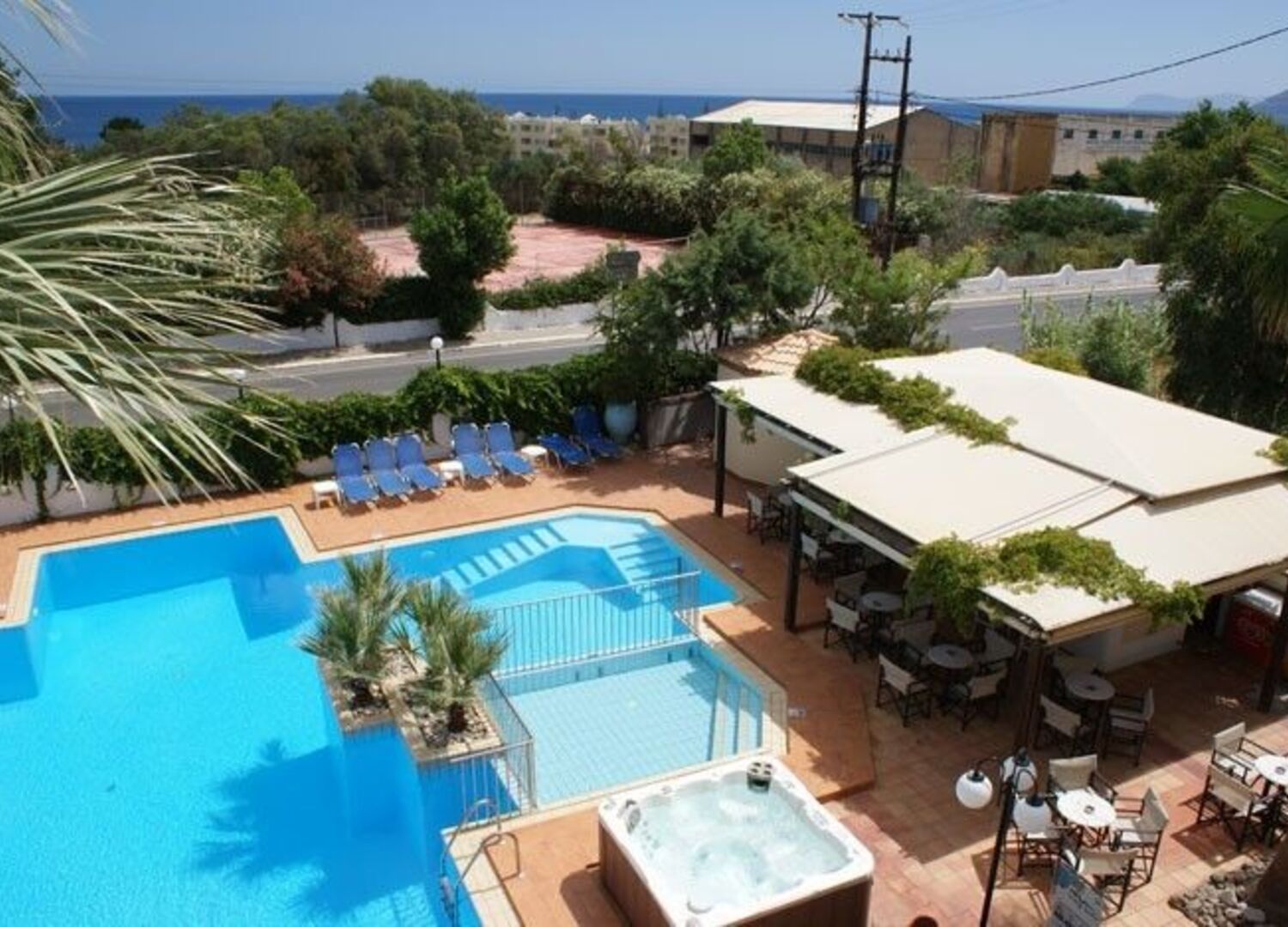 One of our party snapped the key off in the lock on the first day and it was fixed within minutes despite it being almost one in the morning. The hospitality here is outstanding. Quiet rooms with a balcony view of the sea. Cleaned daily with fresh bedding and towels. Spacious inside. Access to the pool. They also offer car rental and reasonable prices. Cannot praise enough.