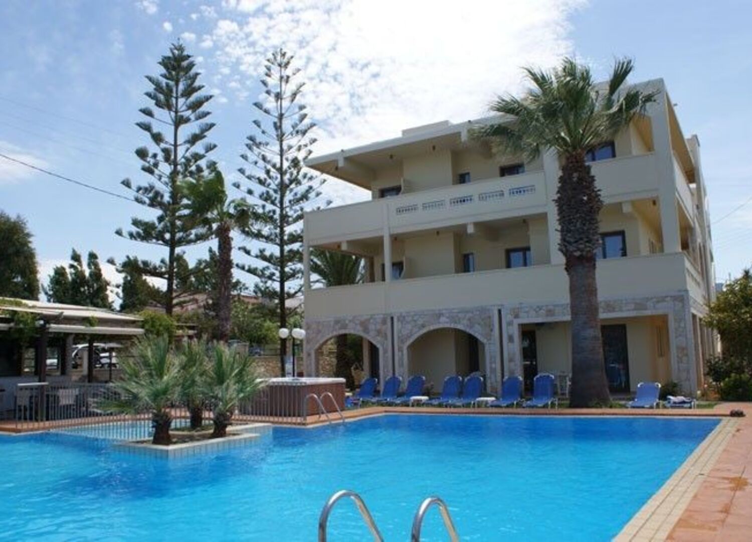 We stayed at the Sunny Suites hotel for 2 weeks and found the Hotel to be perfect for our needs. The staff were warm and welcoming and the rooms were cleaned every day, although the rooms are quite compact they come fully equipped with cooking facilities and utensils and in addition to this we had an iron and hairdryer supplied in the room. The facilities at the hotel are limited to the pool bar but this is perfect for snacks a refreshment. The pool area is kept very clean and organised and there is enough space for all the guests, there was space for us every day at the pool and there was none of the silly behaviour where people save the sun loungers and go out all day. Chania old town is a 20 min bus ride which cost us 7.5 Euro each way for a family of 4, our youngest was free being only 4. There is not a large selection of bars in the immediate vicinity but we did find lots within a 10 min walk of the hotel.