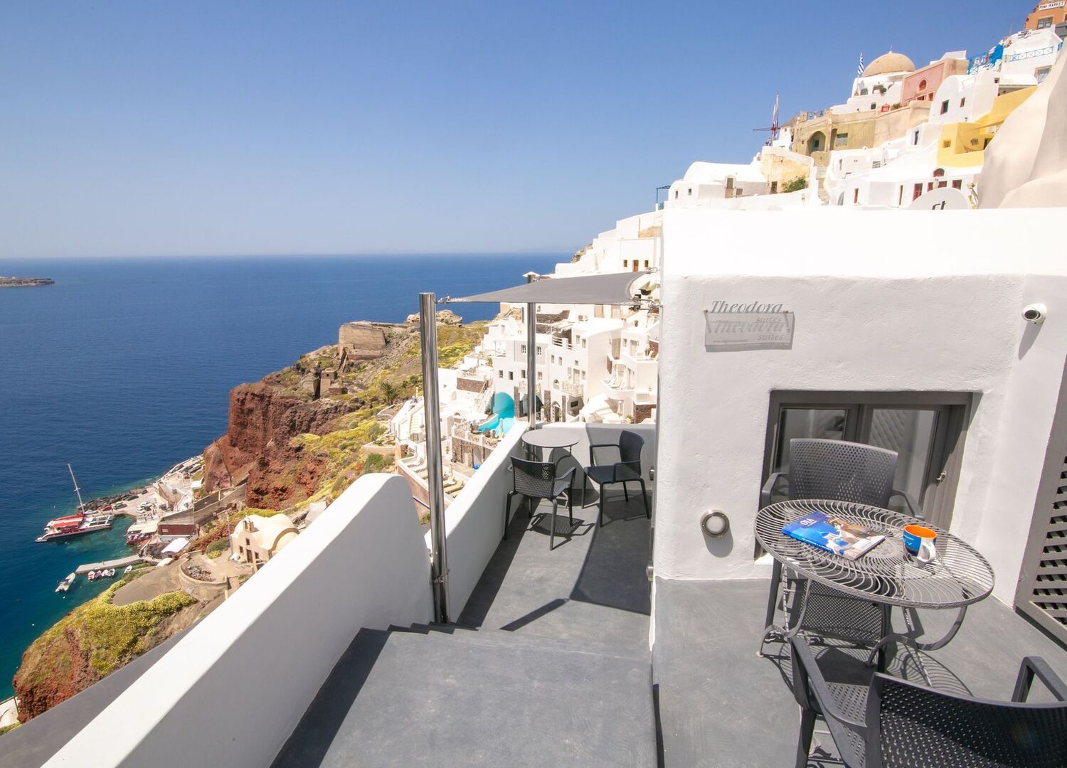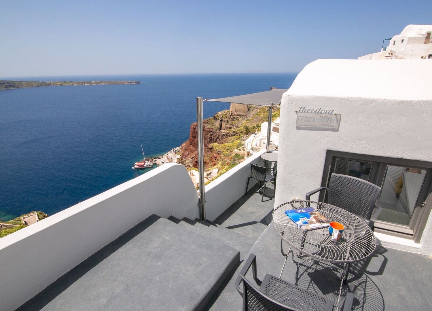 cannot recommend Theodora Suites enough!! Rooms are clean and comfortable, beautiful views, and, from our experience, an amazing location - it is in oia but tucked in a more comfortable spot in ammoudi bay so you are steps away from the action but not completely immersed (for reference, we went in late june). Odisseas was helpful and professional, sent people to retrieve our bags, and was just overall a great host. Breakfast is served every morning to your room. It is a cold breakfast, but it is very good- we enjoyed it immensely. Overall, wonderful experience! Thank you Theodora Suites!