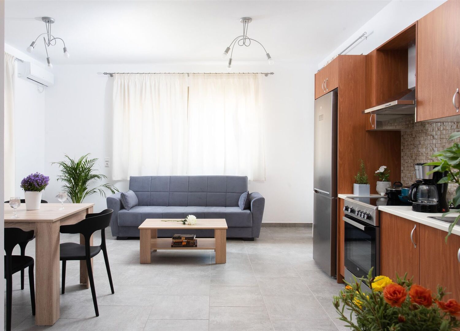 Tulipa Suites located at the new town of Monemvasia (Gefyra) with hotel amenities, in a green and quiet surrounding, minutes walk from the Castle Town.